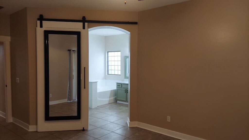 ABSOLUTELY STUNNING fully remodeled 4 bedroom single-level home with a THREE-CAR garage!! Totally immaculate, this home boasts brand-new paint, carpet, lighting, fixtures, blinds--you name it! The spacious island kitchen flows into the open family room! Beautiful barn door closures in the master bedroom and one secondary bedroom! Newly epoxied garage and covered patio! The private grassy backyard even has a storage shed, and the home comes with an electric mower for your convenience! Washer, dryer and refrigerator included! Steps away from one of the community parks! Close to great shopping, schools, the community college! Hurry to this one! OWNER PREFERS NO PETS, BUT WILL CONSIDER ONE SMALL NEUTERED AND HOUSEBROKEN PET**