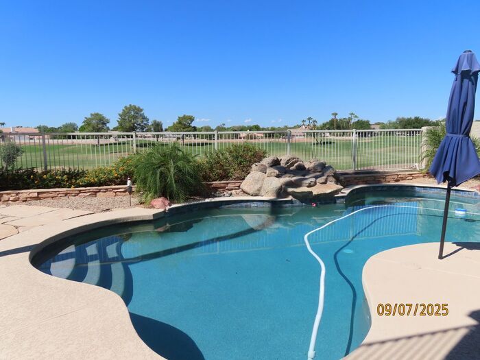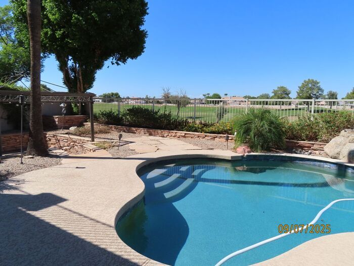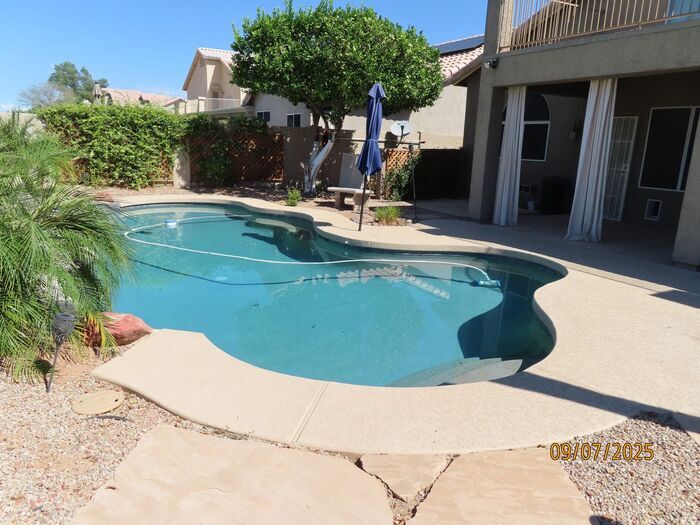 Spectacular golf course property in the highly desirable Superstition Springs at Power and Baseline in Gilbert. This 4 Bedroom 2.5 Bath home is an Entertainer's delight with expansive deck upstairs and downstairs, a pebble-tec pool, gazebo and firepit, all of which overlook Superstition Springs Golf Course. The kitchen has beautiful white cabinets, rich black granite countertops, stainless steel appliances, and an eat-in breakfast bar, with a huge pantry and built-in desk just off the kitchen. On the main floor you will also find a Living Room, Family Room, Formal Dining Room and Main Floor Primary suite with custom touches such as white plantation shutters, ceiling fans and mirrored closets. Upstairs features three additional bedrooms and a bonus room with access to a large deck overlooking the golf course and our gorgeous Arizona sunsets. Other amenities include a 3 car garage with built-in cabinets, a large walk-in laundry room on the main floor with additional built-in cabinets, 2-built in dog doors, and a whole house water softener. All of this with quick easy access to US 60, Loop 202 & 101, Shopping, Costco, Superstition Mall, Highland High School and Dining galore. Hurry and call or text Carrie at for a tour. This home will rent fast. Pool included in rental rate. Landscaping service available with additional $250 per month. Brinks Security System available to tenant at additional cost outside of lease agreement or the system can be disarmed but will remain in the home. Grassy front yard with hard scaped back yard. Pets upon approval only with $300 pet fee per pet. Sorry no cats allowed. Washer, dryer and fridge are onsite as a courtesy only and will not be repaired or replaced throughout the duration of the lease. Tenant responsible for utilities thru SRP and the Town of Gilbert. Applications available at Application fee is $40 per person over 18. $3545.00 Monthly Rent $ 70.90 Tenant Admin fee 2% $3615.90 Total Monthly rent $3600.00 Refundable Security Deposit $ 300.00 Non-Refundable pet fee per pet upon approval only. Contact us to schedule a showing.