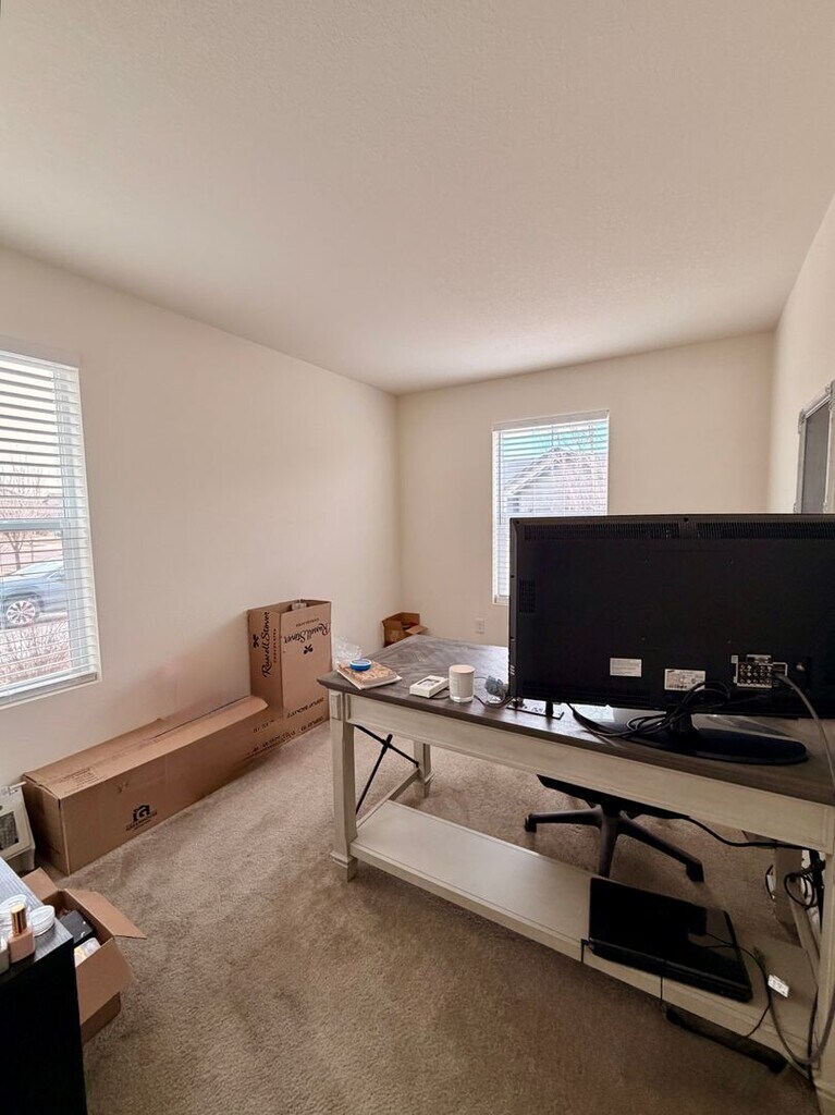 A rare opportunity to live in a relatively new home built JUST in 2020! This spacious residence offers 3 bedrooms and 2.5 bathrooms, including a main-level powder room and an owner’s suite with a 5-piece bathroom featuring a separate soaking tub, plus an additional full bathroom upstairs. Upstairs laundry adds SO much convenience, and two additional rooms (office and loft) make this home feel HUGE and truly move-in ready! Enjoy plenty of natural sunlight throughout, along with beautiful mountain views and stunning sunsets from the upper level—especially impressive in the evenings. The island-style kitchen offers generous counter space and a large pantry, opening to a hyper-functional and sensible floor plan ideal for both everyday living and entertaining. The living room features a cozy gas fireplace, while the unfinished basement provides excellent storage options. There is ample room in the 2-car garage, and the outstanding location—close to I-25 (but not too close!)—makes commuting to Denver or anywhere along the Front Range a breeze. No cats, please. Dogs are not preferred but may be negotiable with additional pet rent and deposit. Call today for more information and to schedule a viewing!