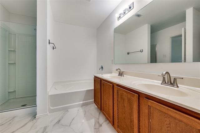 Section 8 Eligible. Recently renovated. Welcome to a sought-after location in Frisco's Creekside at Preston! This charming single-story home is perfect for small family or those looking to downsize. Just steps from the Creekside jogging path and park, it offers convenience and natural beauty. The exterior features natural stone accents against a brick front, creating stylish curb appeal. Enter to find a spacious covered porch leading into a versatile formal living area, ideal for a study, kids' playroom, or sitting area. The large, open kitchen boasts ample cabinet and counter space, a walk-in pantry, and seamlessly flows into the main living area with a cozy fireplace. The master suite offers a private retreat with a garden tub, separate shower, and dual vanities. Secondary bedrooms are on the opposite side of the house, providing privacy and easy access to a shared bathroom.Fully owned solar panels to reduce electricity costs. Don't miss this delightful home in a prime Frisco location! Available Aug 7th.