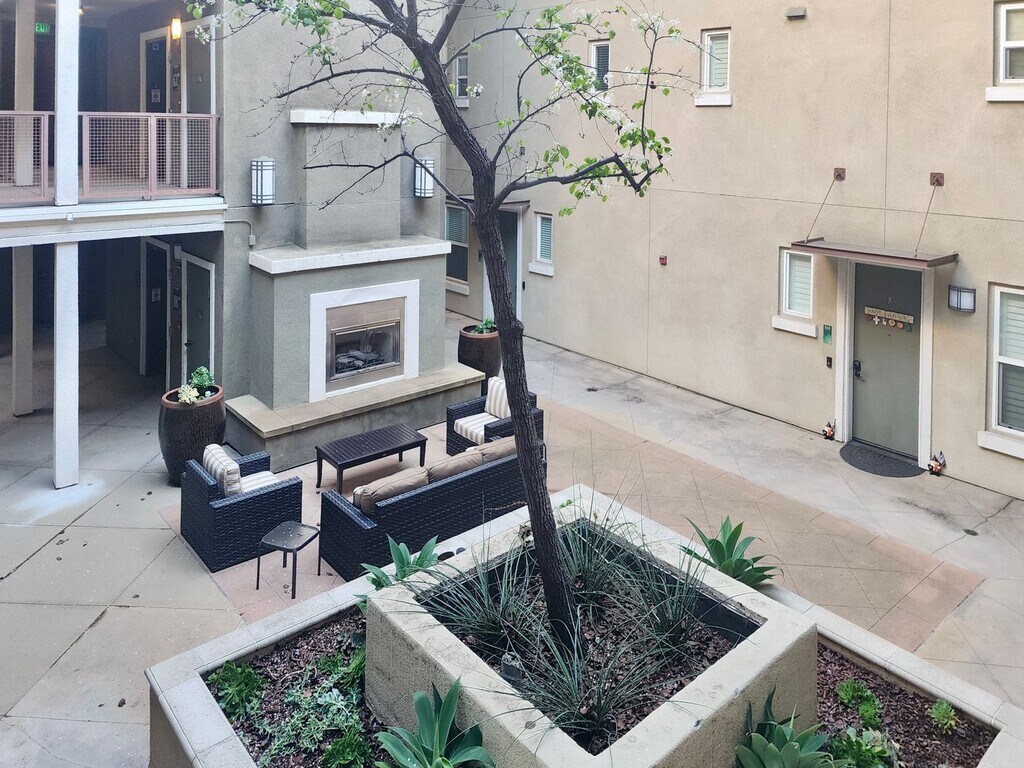 FOR LEASE - Available now! No smoking and no pets please! This well-maintained 2-bedroom, 2-bath condo offers 1,025 square feet of comfortable living space in a secure, professionally kept community. The home features an open-concept layout with a spacious living area, large windows for natural light, and direct access to a private balcony. The kitchen includes granite countertops, stainless steel appliances, extensive cabinetry, recessed lighting, and a breakfast bar that opens to the main living space. The primary bedroom is generously sized and includes a large walk-in closet with built-in shelving. The en-suite bathroom features dual sinks, ample counter space, a soaking tub, a separate walk-in shower, and additional built-in storage. The secondary bedroom is also well sized with a standard closet and adjacent access to a full guest bathroom with a shower/tub combination and tile flooring. The home includes an in-unit LG ThinQ full-size stacked washer and dryer, multiple interior storage closets, central air and heat, and a combination of wood-style flooring, tile, and carpet throughout. The community offers a central courtyard with seating areas, a fireplace feature, and well-maintained landscaping. Additional amenities include a gated pool and spa area with lounge seating, BBQ and outdoor dining areas, and secure walkways. The building exterior and common areas are clean, well lit, and professionally maintained, providing a comfortable living environment with convenient access to nearby shopping, dining, and major transportation routes. Good credit and good income required. BEWARE OF SCAMS. This property is only posted on Zillow, Trulia, and Hotpads by Legacy Property Management. If you see this property posted anywhere else, it is 100% a scam. Tenant to pay utilities and renter's insurance.