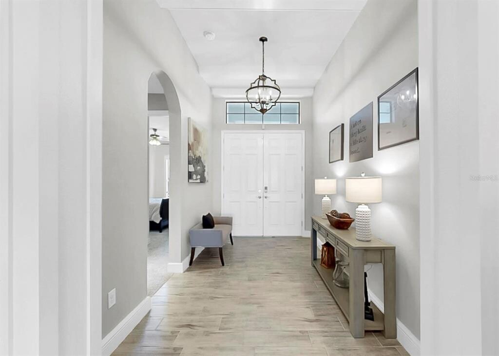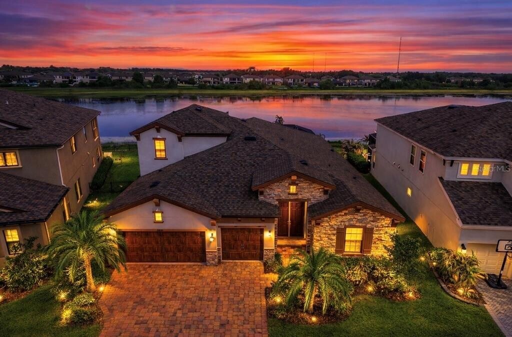 Experience LUXURY LIVING in this stunning 4-bedroom,4-bath LAKEFRONT POOL HOME with an OUTDOOR KITCHEN,designed for both everyday comfort and upscale entertaining. From the moment you step through the double front doors,you’re welcomed by sweeping views of the sparkling in-ground pool and tranquil lake beyond. A grand foyer with SOARING CEILINGS,EXPOSED BEAMS,custom moldings,and elegant chandeliers sets the tone for the rest of the home. High ceilings and designer finishes frame a dramatic floor-to-ceiling STONE FIREPLACE with color-changing LED lighting. The gourmet kitchen is a chef’s dream,featuring quartz countertops,extensive cabinetry,a large island,stainless steel appliances,a walk-in pantry,and modern touches like under-cabinet lighting and a premium sink with designer fixtures. Seamlessly blend indoor and outdoor living through a 16-FOOT SLIDING GLASS POCKET DOOR that opens to your private backyard retreat. The SCREENED LANAI showcases an executive outdoor kitchen complete with granite countertops,bar seating,built-in grill,beverage refrigerator,and more—perfect for hosting or unwinding. The custom LAGOON-STYLE POOL features LED lighting,a tanning ledge,water features,and ample deck space,all overlooking breathtaking panoramic lake views. The SPACIOUS PRIMARY SUITE offers a peaceful escape with serene pool and lake views,plush carpeting,and dual walk-in closets with custom shelving. The luxurious ensuite bath includes split vanities,a soaking tub,a spacious walk-in shower,and dedicated vanity space. The thoughtfully designed layout includes a private guest bedroom with full bath near the entry,plus a versatile HOME OFFICE / den space. An additional large bedroom and full bath complete the downstairs. Upstairs,a generous BONUS ROOM provides endless possibilities—home theater,game room,or additional living space—along with a fourth bedroom and private full bath,ideal for guests or extended family. Additional highlights of the home include NEW carpeting,high ceilings and 8-foot doors throughout,designer lighting and ceiling fans,WOOD-LOOK TILE flooring,Granite countertops in all bathrooms,laundry room with convenient access,and a beautifully landscaped lot with PAVER DRIVEWAY and LUSH GREENERY. Located in the highly desirable Triple Creek community,residents enjoy access to resort-style amenities including THREE pools,a fitness center with group exercise classes,THREE clubhouses,pickleball,basketball,tennis and sand volleyball courts,walking trails,dog parks,and a vibrant community atmosphere with an active social events calendar. *Cameras/Security System do not stay with home.* MLS# TB8496151