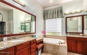 FULLY FURNISHED RENTAL ONLY. Next availability for renting is 10/01/25. 90 day minimum lease and available for long term lease. Corte Bella,guarded gated,Golf course community - Offers heated pools & jacuzzi,pick a ball,spa,Tennis courts & Restaurants. This Well-kept 3Br/2.5Ba home features Great/Dining rooms & Bay window Office. Upgraded Gourmet kitchen w/Merrillat Masterpiece Cabinetry w/Crown moldings,Granite Counters & Travertine Floors. Kitchen island,Walk in pantry,SS appliances. Master w/Large walk-in closet,jetted tub,walk in shower,& Double sinks. Backyard w/in floor Self-cleaning Pool & 4 cascade fountains. Built in BBQ. Close to Community entrance through private courtyard w/Toscana fountain.