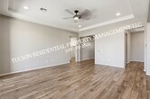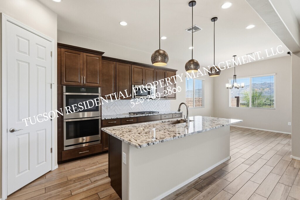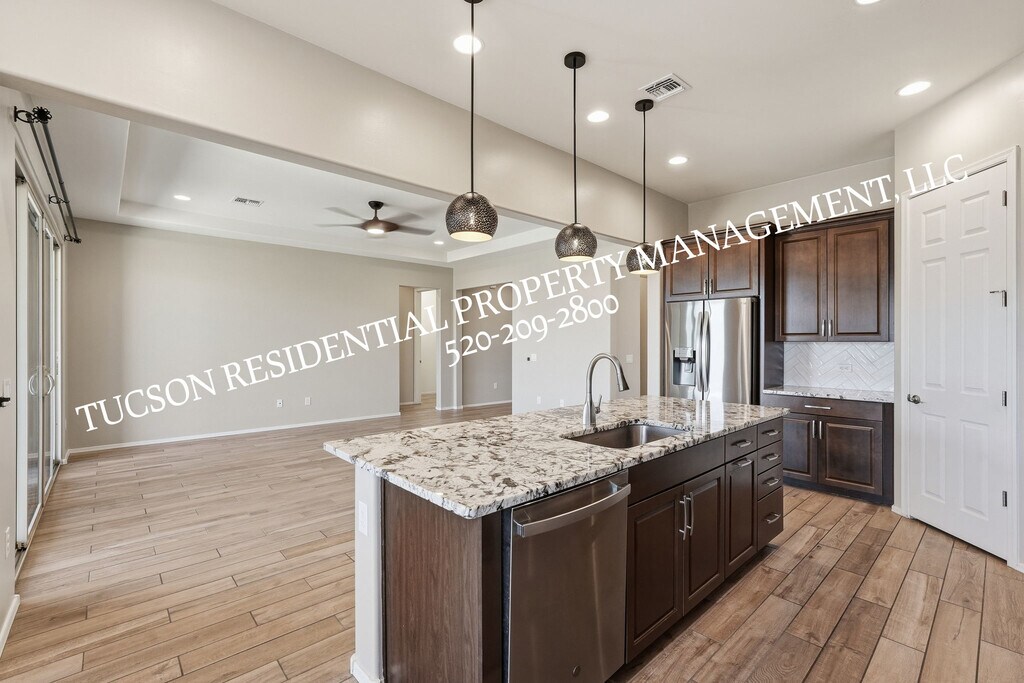 To view this property please paste /copy the link below ln your browser: Built 2022 3 BED 2.5 BATH+DEN 2262 SQ.FT single-story home located in the highly sought-after Rocking K Community featuring a highly desirable and thoughtfully designed floor plan. The home offers generous living spaces, ideal for both everyday living and entertaining. At the heart of the home is a well-appointed kitchen featuring rich wood cabinetry, granite countertops, and stainless steel appliances. A charming breakfast nook provides the perfect spot for casual dining. Included appliances are a refrigerator, gas stove, double oven, dishwasher, and built-in microwave. The open-concept layout seamlessly connects the kitchen to the formal dining and living areas, creating an inviting and functional space. Large sliding glass doors fill the home with natural light while showcasing scenic mountain views.The primary bedroom serves as a private retreat, complemented by two additional well-sized bedrooms. The home also features modern bathrooms, a dedicated laundry room with washer/dryer hookups, a walk-in closet, neutral flooring, recessed lighting, and ceiling fans throughout for added comfort and convenience. Elegant tile flooring enhances the main living areas, while plush carpeting in the bedrooms adds warmth and comfort. Step outside to a beautifully maintained backyard featuring a sparkling pool, your own private oasis, perfect for relaxing, entertaining, and enjoying Tucson's sunshine. The property also includes a spacious three-car garage. WEEKLY POOL SERVICE INCLUDED. Pets are subject to approval. Pet rent $25/mo. per pet. Non-refundable pet-fee $ 300.00 per pet. Application Fee: $65 per app. Monthly Administration Fee: $25.00/mo. Move In Lease Administrative Fee: $250.00. SECURITY DEPOSIT $ $4,350.00 Please contact the leasing office if you have questions about the listing at: or call us at . To apply for this property please click on below link: