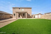 This 4-bedroom 2.5 bathroom home,features a landscaped front yard with a formal living room as you enter. An open den,breakfast area,and kitchen are laid out shotgun style,with matching appliances,granite countertops,and an island for extra prep space. A half bath is on the main floor as well as the primary suite,giving extra privacy with a beautiful ensuite and walk-in closet. Upstairs is a loft,three additional bedrooms,and a shared bath. Enjoy REFRIGERATED AC and a covered patio in the backyard,landscaped with turf,rock,and a shed for extra storage. Please verify schools. We can only work with a two week move in time frame/hold period. Rental price includes enrollment in a residence benefits packaging of $30 a month. To schedule a showing please see Confidential Remarks.