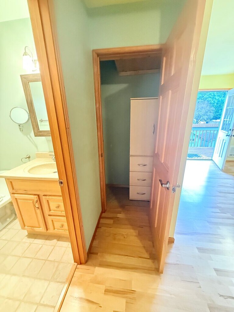 Rental unit located in a beautiful Poulsbo area. This upper-level unit offers spacious 1-bedroom, 1-bathroom, private entrance, full kitchen, 2 parking and more. Custom type finishes, vaulted pine ceilings, real wood trim, hickory cabinets. In addition, you can have your laundry done conveniently with the shared laundry on-site. Enjoy a cozy and private life with all the amenities of the area. You can benefit from the close proximity to Island Lake Park, which is only a few blocks away. Enjoy the trails, beach, picnic areas with your family and friends for great time together. Also, close to the great shopping and entertainment centers at nearby Silverdale and Poulsbo. This is a very short commute to Naval Bases Kitsap and Keyport, and minutes from the highway to Puget Sound Navy Shipyard. Perfect for anyone looking for their own space and comfort. Septic is included in rent. Tenant is responsible for the rest of utilities. The garage is for tenant' use. No pets. Application fee is$50/person. Move in admin fee is $75. Available now.