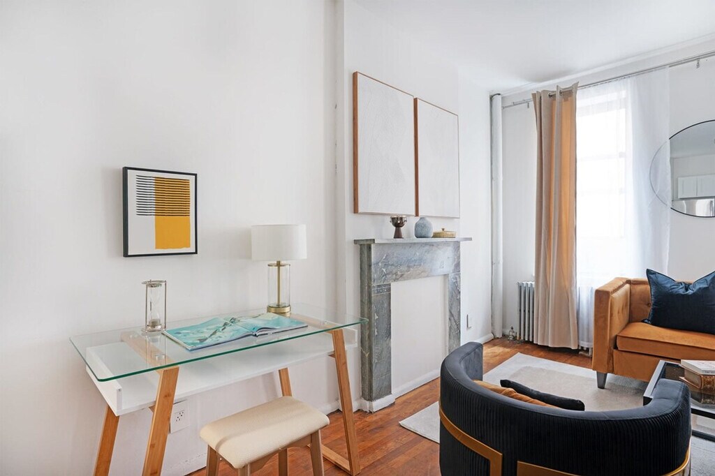 Within this one-bedroom apartment, visitors will be welcomed by elegant hardwood flooring that spans the entire space. The bedroom boasts a queen-size bed, while the living area features a full-size sofa. Guests can unwind in the living room, equipped with a flat-screen TV and Wi-Fi. For your convenience, all essential linens are provided, and the kitchen is fully stocked. The apartment is on the third floor, no elevator. Indulge in the charm of this 1-bedroom apartment, where comfort meets style. The inviting bedroom boasts a stylish queen-size bed, while the living room's full-size sofa invites relaxation. An air mattress is on hand for extra guests. The well-equipped kitchen is a culinary haven, complemented by a spacious dining area for shared meals. Hardwood floors exude elegance, while a flat-screen TV and Wi-Fi offer entertainment. Linen provisions ensure convenience. Experience the heart of the Upper East Side with all you need for a delightful stay. Nestled in Manhattan, the Upper East Side (UES) stands as a refined neighborhood renowned for its cultured ambiance. Anchored by iconic art institutions like the Met and Guggenheim, it's a haven for art enthusiasts. Madison and Lexington Avenues showcase upscale boutiques and dining, while the area's stately townhouses and proximity to Central Park offer a blend of elegance and tranquility. The UES radiates a classic New York City charm with its mix of history, culture, and sophistication. New York City's heating season is until the end of May. Beginning around mid-April, window Air Conditioning will be installed in the apartment. You can request an earlier installation. The apartment is located three flights up with no elevator. [SI]