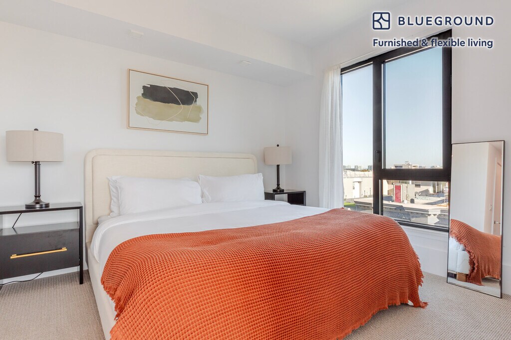 Discover the best of San Francisco, with this two bedroom apartment in SoMa. It’ll be easy to simply show up and start living in this beautifully furnished apartment with its fully equipped kitchen, beautiful living room, and our dedicated, on-the-ground support. (ID #SFO1912) The advertised rate of $7,240/month is the lowest available price, based on a 2 month(s) and 26 day(s) stay with a move-in date of January 2, 2026. If you’re looking for a 1-year stay, the rate is $7,470/month. Rates vary depending on the duration of stay, season, and other parameters. For exact pricing and additional pricing components, please visit our website and enter your desired move-in and move-out dates. The rate is applicable when billed upfront; it can be higher if billed in multiple payments. Brokers are welcome to reach out. Were you looking for an unfurnished lease? Try Blueground instead and upgrade from unfurnished to furnished living: - Furnished at rates comparable to unfurnished - No setup or furniture costs - save thousands - Move-in ready - save time, just bring your suitcase Designed with you in mind As with any Blueground apartment, you’ll find a thoughtfully designed space complete with beautiful furniture and a fully equipped kitchen in this two bedroom property. And, thanks to our superior quality mattresses, luxury linens, and towels, you can relax knowing you’ll always feel comfortably at home. When you’re ready for some fun, you can take in the San Francisco vibes or bring the entertainment to you with the premium wireless speaker or smart TV. This apartment also offers in-apartment laundry. Sleeping arrangements King Bed, 70.8in/180cm Double Bed, 55in/140cm Amenities Building amenities unique to this two bedroom apartment include an on-site: - BBQ Area - Doorman - Dryer - Elevator - Washing machine - Pets allowed Arrival and ongoing support The entire apartment is yours to enjoy! Throughout your stay, you’ll have access to our Client Experience team through the Blueground App. You can schedule additional cleanings, submit maintenance requests, and view our neighborhood recommendations with just a few taps. We’ll share all details upon confirmation of your stay. Ideally Located This furnished apartment is located in South of Market, known as SoMa. A trendy, urban district, famous for its excellent art and museum scene. Home to a diverse mix of entrepreneurs and young families, this neighborhood offers hip bars, fine dinings and delicious coffee. Don’t miss the plethora of museums, including a visit to the San Francisco Modern Museum of Art. Baseball lovers frequently visit SoMa, as it is also home to the San Francisco Giants. Other things to note Building amenities may have an extra cost. This Blueground apartment has flexible lease options, allowing you to book it for one month, a year, or more. Pets are welcome, though weight limits and breed restrictions apply and may incur fees. We take great pride in ensuring every photo displayed is shot in our own units with our actual furnishings. That said, we regularly refresh our decor and furniture arrangement, which may differ from what’s pictured. [SI]