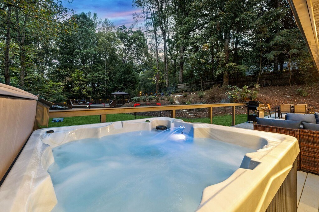 Welcome to Emory - your private retreat near Emory University in the heart of Atlanta. Designed for comfort and style, in a serene and quiet setting surrounded by trees, this beautiful home accommodates up to 12 guests across a main house and separate in-law suite. Enjoy the open-concept living area with a modern kitchen and spa-inspired master suite. Step outside to a fully fenced backyard oasis featuring a seasonal pool, year-round hot tub, firepit, and outdoor dining. Every detail has been thoughtfully curated to create a sophisticated, relaxing experience while staying in the heart of Atlanta. Key Features: • Bedrooms & Bathrooms: 3 bedrooms and 2 full bathrooms in the main house, including a dedicated workspace and a large primary king bed suite with walk-in closet and en-suite bathroom featuring a large walk-in shower with double shower-heads and integrated 72-inch freestanding whirlpool jacuzzi tub with inline heater. • Separate In-Law Suite: Studio-style suite with separate entrance featuring a queen bed, a living area with a pull-out queen-size sofa bed, a full kitchen and a full bathroom. • Living Space: Open-concept main house with a cozy living room, large Smart TV, electric fireplace and formal dining area. • Kitchen: Newly renovated chef’s kitchen with stainless-steel appliances, island seating, wine cooler and more. Additional full kitchen located in the in-law suite, ideal for multi-generational living. • Outdoor Living: Private fully fenced-in backyard oasis including several hang-out spots between a back patio, large lawn, pool deck and upper firepit area, featuring several outdoor seating areas, outdoor dining, a BBQ gas grill, a private hot tub (open year-round), a hammock, games (soccer nets&ball, cornhole), a private pool (14 feet by 30 feet, & 5 feet deep; only open in summer May - September and not heated), as well as a cozy firepit are overlooking the lush neighborhood. • Parking: 2 separate driveways Amenities: • 5 Smart Roku TVs throughout the home • High-speed internet and WiFi • Front-load washer & dryer • Stainless steel kitchen appliances • Central heating and cooling in the main house; Mini-split air conditioner heat pump unit in In-law Suite. • Electric fireplace • Private hot tub • Private pool • BBQ gas grill • Fire pit Location: Tucked away on a quiet cul-de-sac in prestigious Druid Hills, this Emory home offers the perfect balance of privacy, charm, and convenience. Just minutes from Emory University, the CDC, Emory Village, and the Atlanta Beltline, you’ll enjoy a peaceful residential setting with quick access to top-rated schools, lush parks like Olmsted Linear Park and Fernbank Forest, and the vibrant nearby communities of Virginia-Highland, Decatur, Inman Park, and Morningside. With Hartsfield-Jackson Airport just 25 minutes away and Midtown, Downtown, and Atlanta’s premier attractions within easy reach, this location provides an exceptional in-town lifestyle. Lease Details: • Monthly Rent: $7,500. Price is valid until May 1, 2026. May - September 2026 (pool season) will be an additional $2,000/month. Please note that the pool is only open during the months of May through September, and closed October through April. • Refundable Security Deposit: equal to one month rent. • Included Services: Internet, pest control, landscaping, trash, and pool service. • Utilities: Water/sewer, power, gas are not included in the rent but can be added for an additional monthly charge based on lease terms. • Pet Fee: $500/pet. • Minimum rent duration: 3 months. • Maximum rent duration: 12 months at a time with the possibility of extension. • No Section 8. • No smoking allowed inside. Additional Information: • This property is being offered only as a fully furnished home. • The property is currently occupied and available for showings by appointment only. Please inquire with your exact desired lease dates.