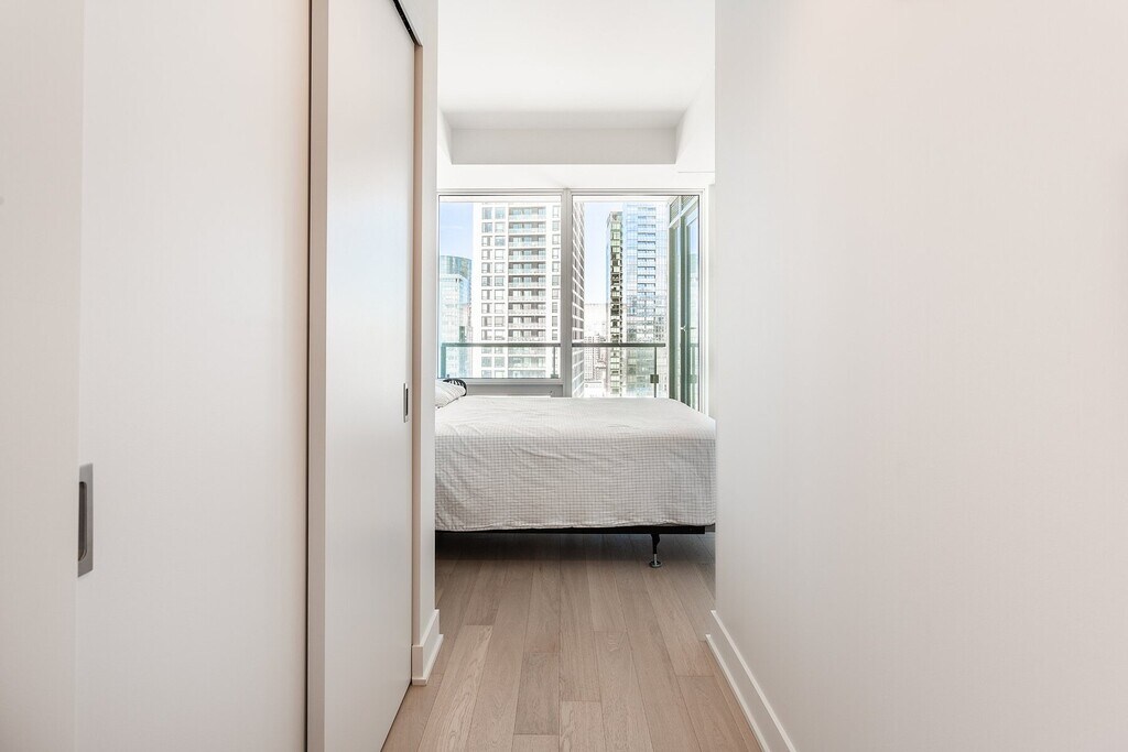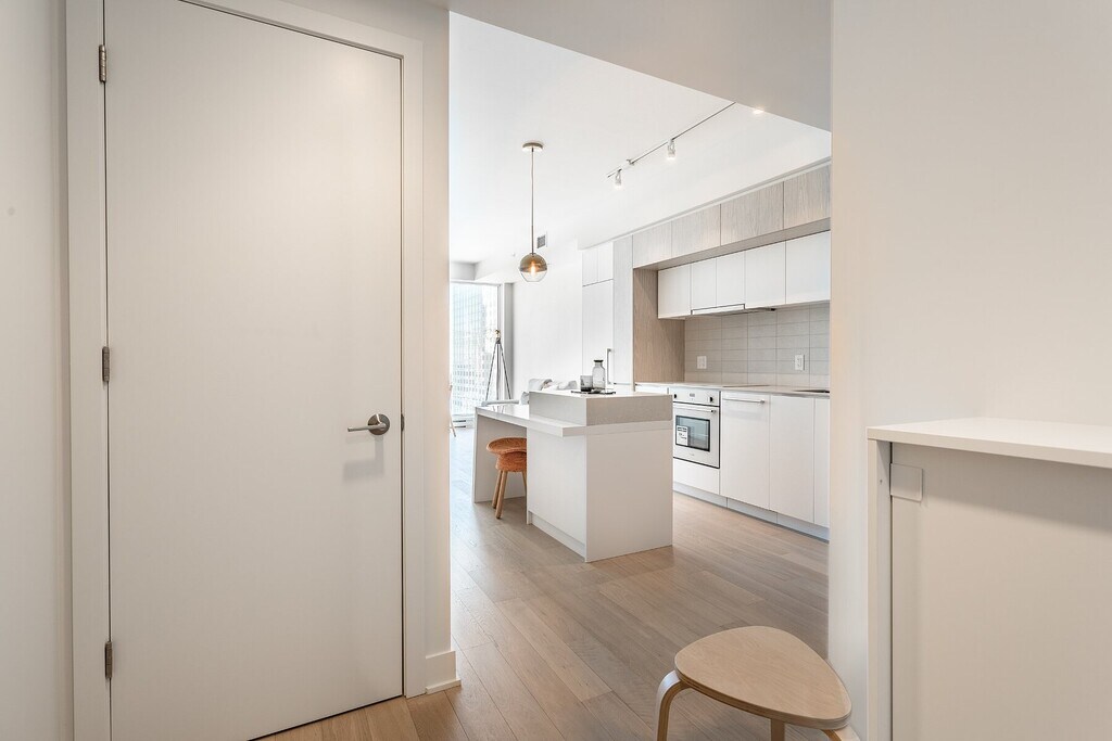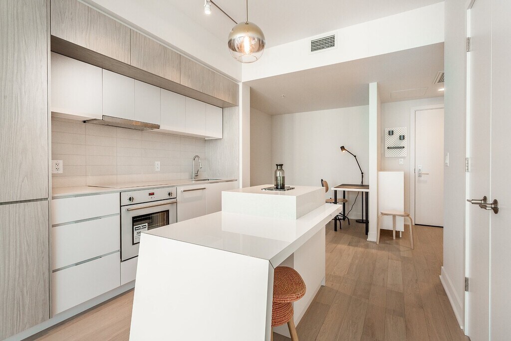 Fully furnished is ideal for turn key. Open concept, huge windows. 1 bedroom and 1 den that can be used as the 2nd bedroom. The building offers high-end services: security, doorman, pool, gym, concierge. Direct access to the metro station.