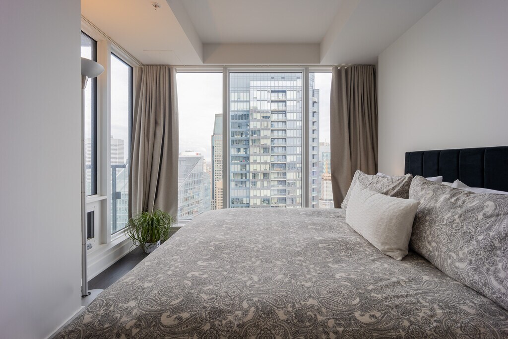 Luxury condo in downtown Montreal with access to common areas (pool, sauna, gym, sky lounge on the 55th floor, BBQs, terrace, 24/7 security, and so much more!) This unit has all you need to make you feel at home. Suitable for travelers, business professionals, and students. A 5-minute walk from the Metro, grocery store, coffee shop, and restaurants.Tout nouveau condo de luxe 2 chambres à coucher et 2 salles de bain au centre-ville de Montréal avec accès aux aires communes (piscine, sauna, gymnase, skylounge 55e étage, bbqs, terrasse, sécurité 24/7 et bien plus encore !) Ce logement a tout ce dont vous aurez besoin pour vous sentir comme chez vous. Il convient aux voyageurs, aux professionnels et aux étudiants. À 5 minutes de marche du métro, l'épicerie, café et plusieurs restaurants. 3400 $/mois (tout compris - wifi haute vitesse,TV HD 50", stationnement intéreieur, électricité, entièrement meublé) $3400/month (everything included - high-speed wifi, 50"HD TV, indoor parking, electricity, fully furnished)