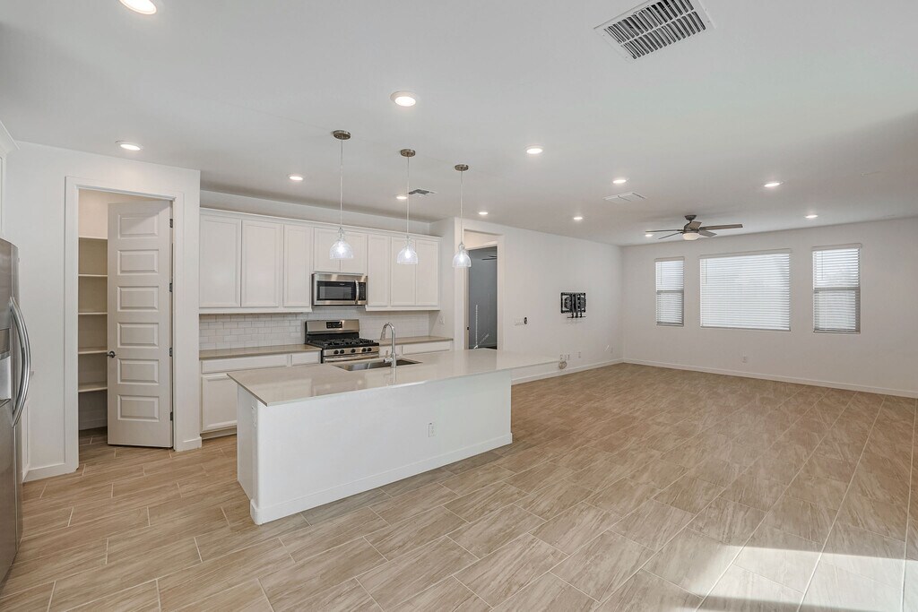 A Chance to LIVE in one of the most sought-after communities in Surprise, Marley Park! This Beautiful 4 bed, 3 bath built in 2020 has an open floor plan, high ceilings, beautiful tile floors, upgraded lighting/ceiling fans. The Chef's kitchen offers a Large Island, White Shaker Cabinets with Crown Molding, SS appliances, pantry, quartz counters and pendant lighting. 2 Patios with a doggie door off the side patio and the 2nd Patio access is from the dining area. The primary bedroom and one of the guest rooms have ensuite baths, the primary has dual sinks, with added cabinetry and a large walk-in closet. The fully landscaped backyard is perfectly sized and offers a covered patio, grass area, and travertine pathways. Community amenities include 22+ parks each with a different theme, 3 pools including a lap pool heated year-round, pool house and clubhouse. OCCUPIED - NOT CURRENTLY AVAILABLE TO VIEW. Will be available of move-in by May 9th.