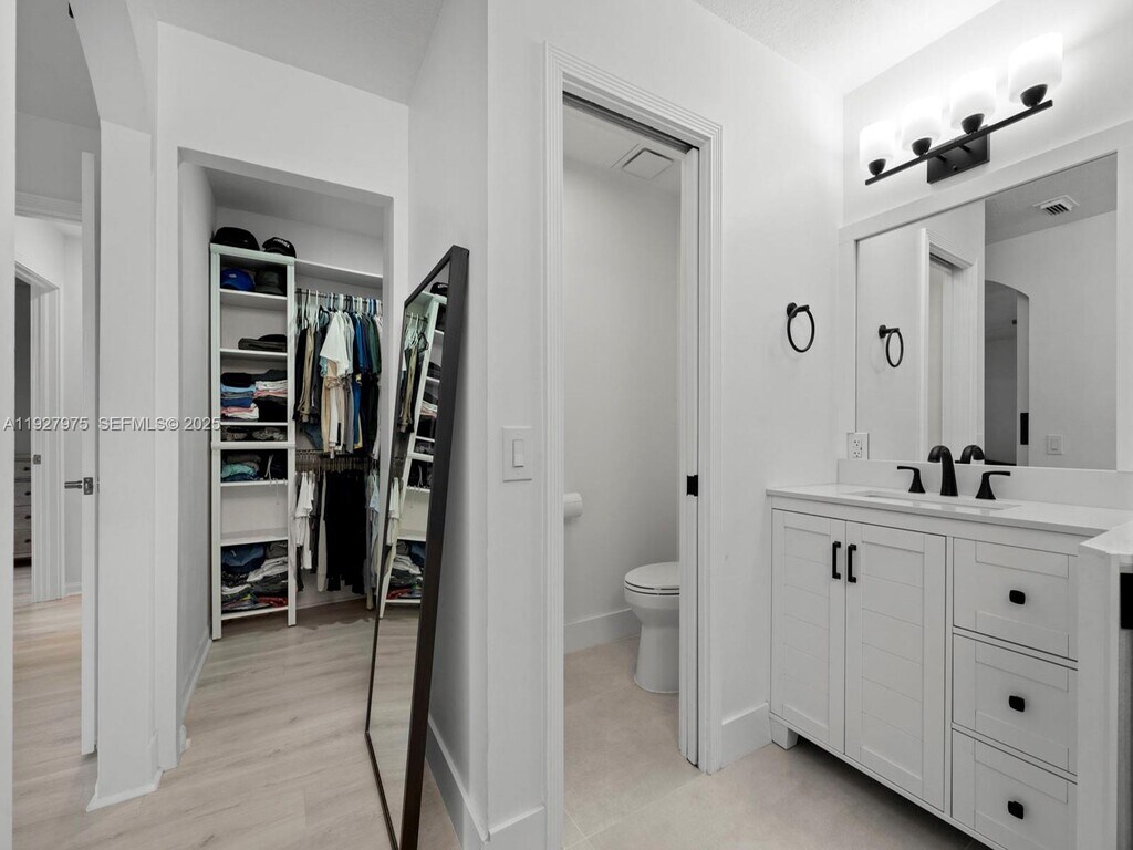 Welcome to this fully renovated 3 bed, 2.5 bath waterfront townhome with a 1-car garage in the wonderful community of Vizcaya. Enjoy dedicated living and dining areas. Entertain with ease in the beautiful kitchen, which features sleek stainless steel appliances and plenty of countertop space. Upstairs, you will find the 3 spacious bedrooms. The primary bedroom hosts a luxurious walk-in closet and ensuite with dual-sink vanities. The second bedroom has a walk-in closet as well. Step out onto the covered patio and you'll be met with a lovely low-maintenance backyard with artificial turf. Community is gated with security patrol. Amenities include community pool and playground. Conveniently located near the Turnpike. Do not miss out on this opportunity!