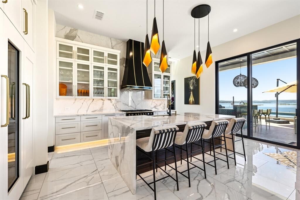 Lakeview living with room to breathe, relax, and entertain—available now for lease! Furnished for $17,000 per month. Wake up to wide-open water views and end your day watching the sun dip behind the hills—all from the comfort of your own home. This stunning three-story retreat on Lake Travis, built in 2022, is now available for rent. It was designed for effortless living and meaningful moments, whether you're hosting a lively gathering or enjoying a quiet morning coffee on the balcony. The main floor welcomes you with an open-concept layout where the living room, dining space, and chef’s kitchen flow together with ease. A wall of windows fills the space with natural light and frames breathtaking lake views, while a statement fireplace and a glass wine room add warmth and character. The kitchen is a dream for anyone who loves to cook or entertain—featuring a large island, marble countertops, and high-end appliances. A private guest suite with its own full bath offers comfort and privacy, and the home’s elevator makes moving between floors simple and accessible. On the top level, the primary suite is your personal sanctuary. Enjoy peaceful mornings on your private balcony overlooking the water, and unwind in a spa-like bathroom with dual vanities, a soaking tub, glass shower, and an oversized walk-in closet. Three additional bedrooms, each with an en-suite bath, provide space for family or guests. Outdoor living is just as inviting. The second-level terrace features a built-in kitchen and dining area, perfect for sunset dinners. Lounge by the pool and spa, or take in panoramic views from the rooftop deck—the ideal spot for relaxing or entertaining under the stars. Located in the scenic Hughes Park Lake neighborhood, you're steps from public lake access and just minutes from marinas, golf, dining, and shopping. Lease this one-of-a-kind lakeside home and experience the best of Austin lake life—private, Also available for SALE MLS# 7585431