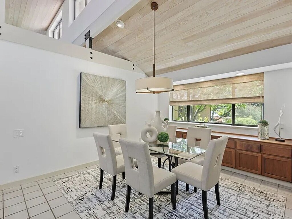 Resting along a private culdesac in exclusive Saratoga, this home presents striking, light-filled interiors opening to an expansive lot of over 20,000 SF. The breezy floorplan features separate living and family rooms, formal and casual dining spaces, dual fireplaces, clerestory windows, and soaring ceilings nearly 20’ high. The kitchen is spacious and highly functional with an island, dual sinks, and stainless appliances including a beverage cooler. Recessed ceilings and backyard access complement the gracious primary suite, which also features a zen-inspired spa bath with dual vanities, jetted tub, and walk-in shower. Additional amenities include ladder access to the loft, a three-car garage with storage and workshop, and expansive entertaining decks. Stroll to Safeway and Starbucks. Easy access to sought-after schools, hiking, golf, wineries, and Saratoga Village. • 4 Bedrooms • 3 Bathrooms • House | 3,035 SF • Lot | 0.463 Acre