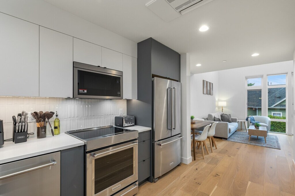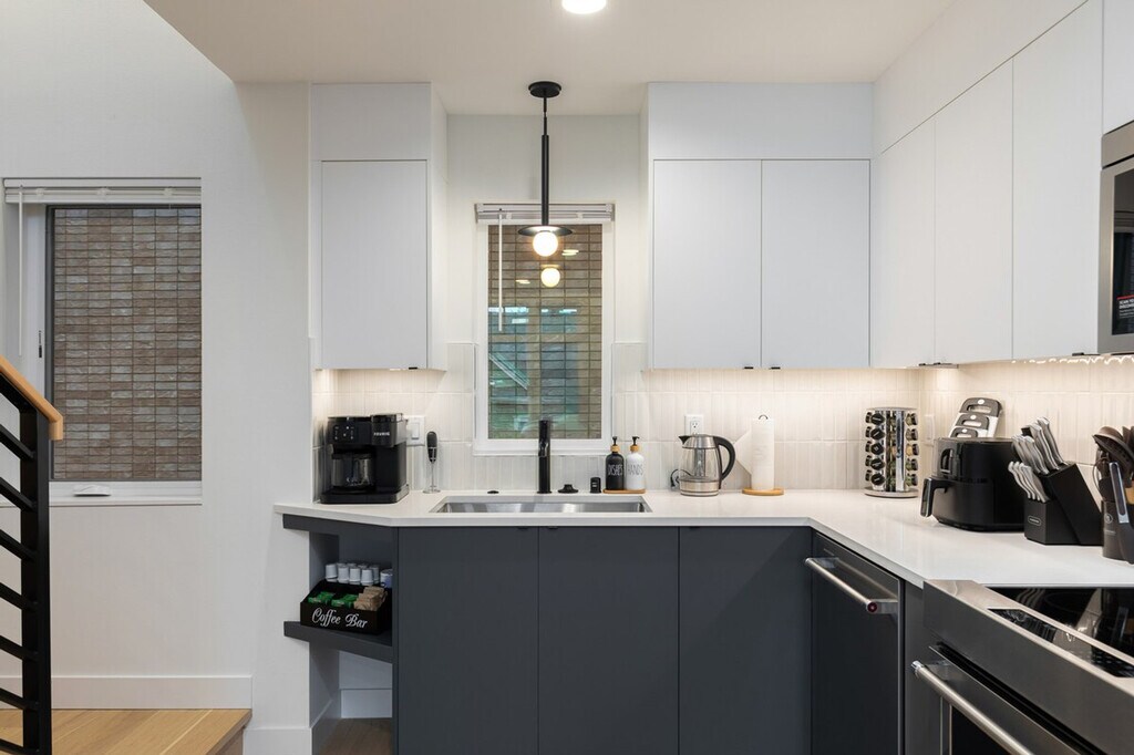 Feel at home in this spacious Capitol Hill townhome, tucked away on a peaceful residential block yet just moments from Capitol Hill’s buzzing cafés, acclaimed restaurants, boutiques, bars, and nightlife. This 2-bedroom, 2.5-bathroom, 1544 sqft five-story townhome (including the rooftop) is located within a gated townhome community. Guests must be comfortable with stairs as there are multiple stories. This thoughtfully designed home features high ceilings, comfortable beds, and generous living space, making it easy to work, relax, or gather. Heating and cooling are provided by mini-split systems in the living room, primary bedroom, and rooftop office. The open loft shares the living room’s system. The first-floor bedroom is equipped with an electric wall heater and a portable A/C unit during the summer months. Blackout blinds and curtains are in all sleeping areas. The kitchen is stocked with high-end kitchen appliances, cookware, silverware, serving ware, spices, Keurig coffee, and tea. A smart TV with streaming services and high-speed internet are available. An on-site washer and dryer are available for your laundry needs. Dedicated parking is included, plus a complimentary city-issued guest parking permit for free street parking for one additional vehicle. Well-trained pets are welcome with a $50/night pet fee. Located just a 4-minute walk to the Link Light Rail Line 1, with direct access to downtown and World Cup venues, this home also offers easy access to bus routes 8, 11, and 43, connecting you to neighborhoods across Seattle. It's about a 10-minute drive to Seattle landmarks, including the Space Needle, Pike Place Market, South Lake Union, and Lumen Field. The rooftop patio offers city views. Strictly no parties and events are allowed, and quiet hours are between 10 pm and 8 am. No smoking or vaping of any kind is allowed anywhere on the property, including outdoor areas, and no digital piracy or shoes are allowed in the home. A $500 fine applies per violation. Kindly refrain from allowing pets on furniture/linens including couches, throws, beds, pillows, and towels. Please do not leave pets unattended and bring poop bags and pick up after your pets. Registration Number: STR-OPLI-25-006526 [SI]