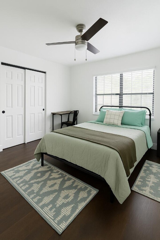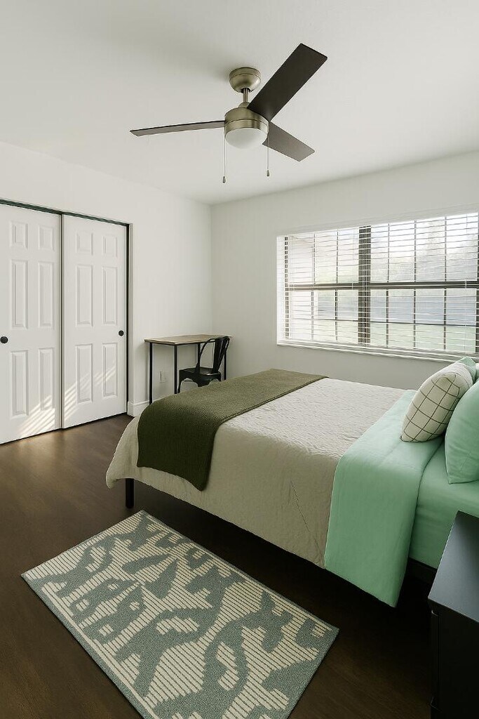 This spacious furnished queen bedroom offers:- Queen bed with quality mattress and linens- Large closet with ample storage- Nightstands with lamps- Dedicated desk and chair for work or study- Full-length mirror- Mini fridge with freezer- Window blinds for privacy- Ceiling fan with light fixture- Area rugs for a cozy touchThe bedroom includes a private bathroom with glass shower, updated vanity, modern lighting, and storage.The home also provides:- Two shared bathrooms for bedrooms without private bath- Two laundry areas with washer and dryer- Fully equipped kitchen and dining area- Entry hall for a welcoming arrivalOptional: bed linens available for an additional $100.00 fee.All utilities included: electricity, water, high-speed internet, lawn care, and weekly cleaning of shared spaces.Located in a quiet Cypress Gardens neighborhood, close to downtown Winter Haven, Legoland, shopping, dining, and the Chain of Lakes. Queen Bedroom with Shared Bathroom | Al...