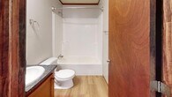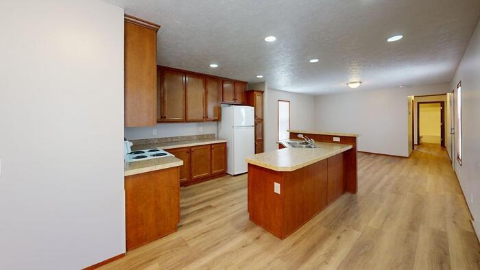 129 American- $1375 | $1375 - This beautiful 3 bedroom, 2 bath mobile home has all you need for a relaxing home life. The kitchen features sleek black appliances including a dishwasher and built in microwave. as well as an island that creates the perfect breakfast bar with stools. It creates an open concept that flows into the living room, making entertaining a breeze. The living room features a unique lighting fixture that makes lamps a thing of the past, as well as dual toned wall colors that give the room a cozy feel. The master bedroom features a walk-in style closet as well as an ensuite bathroom that spotlights a large soaker tub, perfect for a relaxing bath after a long day. The bathroom also features a standing shower and plenty of toiletry storage in the drawers under the sink. The other two bedrooms are similar in size and have adequate closet space as well as bright windows. They have a shared bathroom just at the end of the hall that features a tub/shower combo and a soft green paint job that continues the relaxing feel of this home. There are washer/dryer hookups in the entry room of the home that also holds cabinets and a hanging bar making for the easiest of laundry days. There is a shared driveway for parking. Residents are responsible for heat, electric, lawn care, and snow removal. Unfortunately this is not an animal friendly unit. Contact us to schedule a showing.