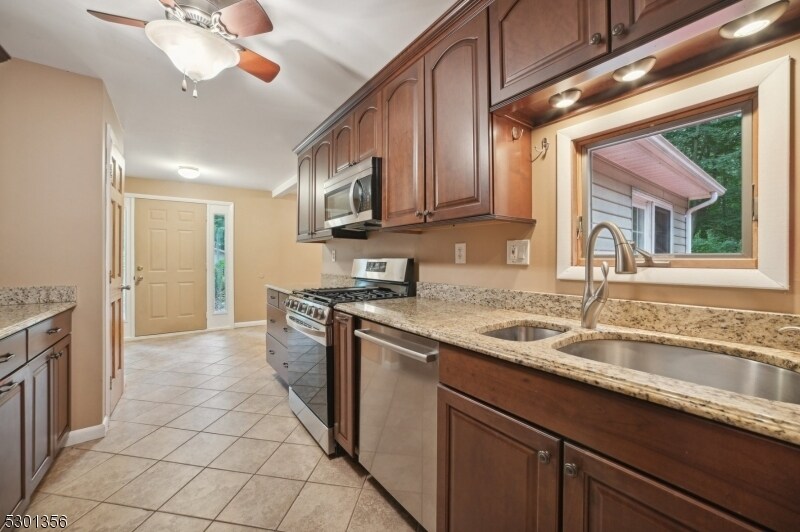 Nestled near the end of a quiet and scenic street, this beautifully maintained ranch offers 3 bedrooms and 2 full bathrooms. The kitchen boasts granite countertops and stainless steel appliances, perfect for any home chef. The spacious living room is highlighted by a stunning floor-to-ceiling stone fireplace, creating a cozy atmosphere. The walk-out basement is partially finished, providing an additional bedroom and extra living space. A large circular driveway accommodates multiple vehicles, making it ideal for homeowners or contractors. The oversized detached garage can hold 2+ vehicles and offers endless possibilities for use. 2 additional sheds for storage are also available for use.