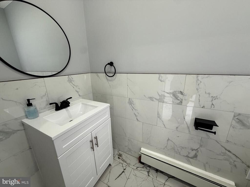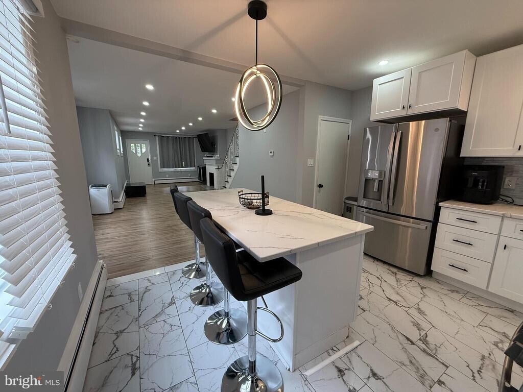 Four Bedroom home recently remodeled with a stunning eat-in kitchen. Kitchen has a large marble island that has seating for four. Large open floor dining room. Lots of recessed lighting. Second floor with 3 bedrooms and full marble bath. Large primary bedroom on the 3rd floor. Covered front porch. Laundry area in full basement. Semi fenced-in backyard with patio. This home is very impressive with the updates and tasteful decor. Close to highways, bridges to PA, entertainment, shopping, train station and airport. Shared driveway. Owner is looking for tenant with 650 or over credit score, no vouchers, no pets.