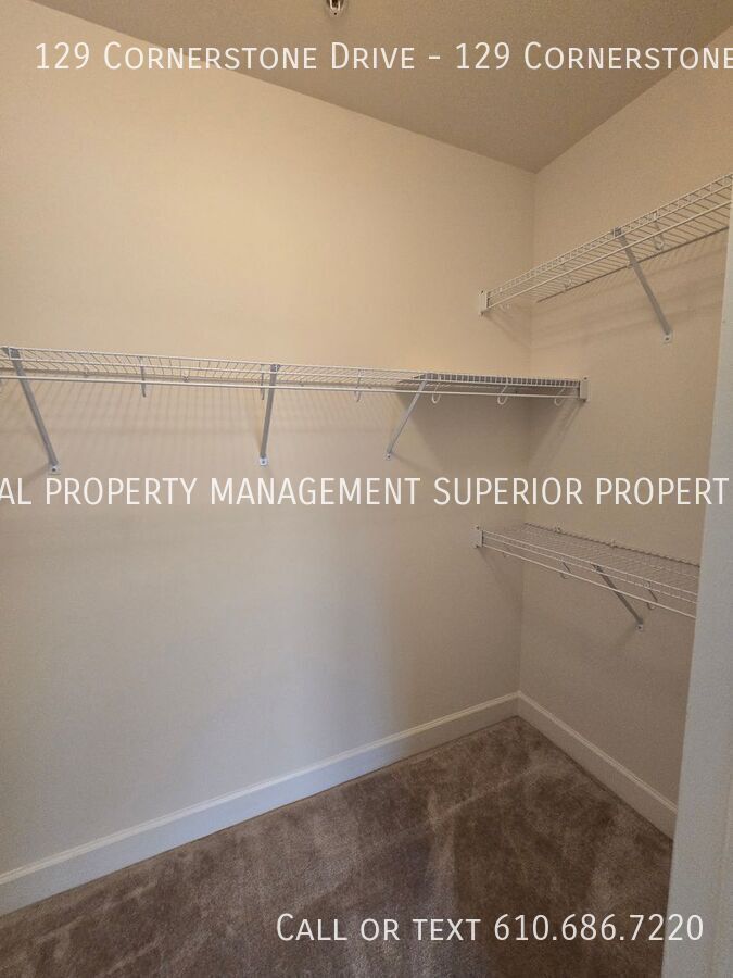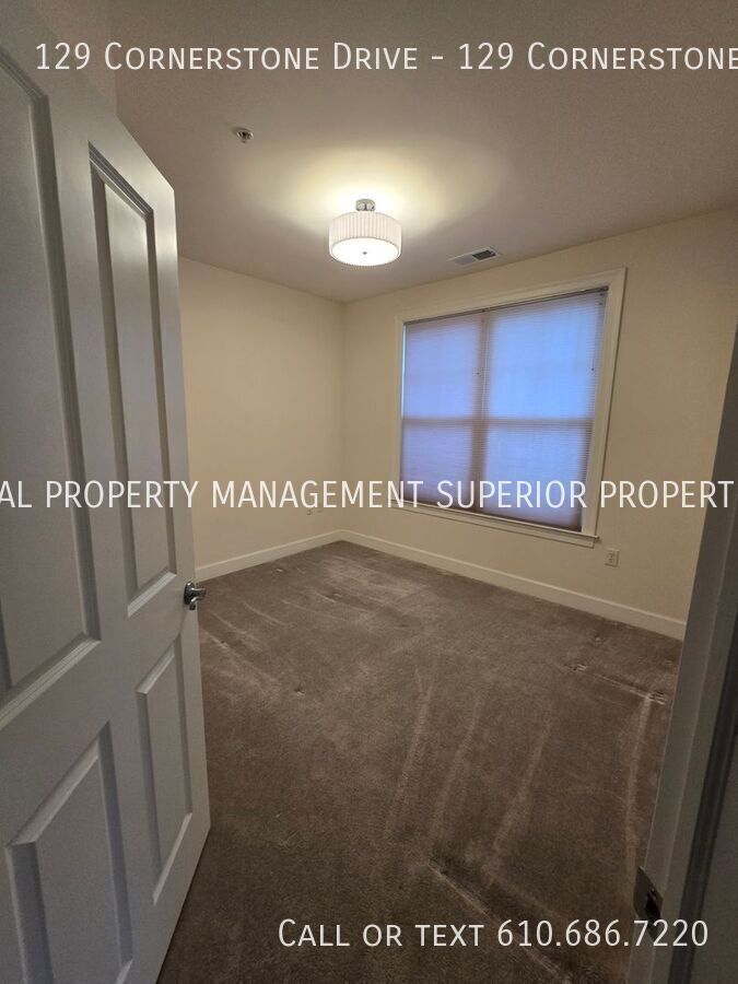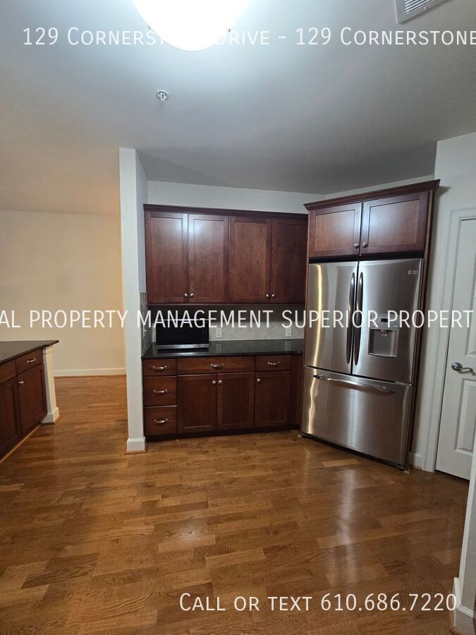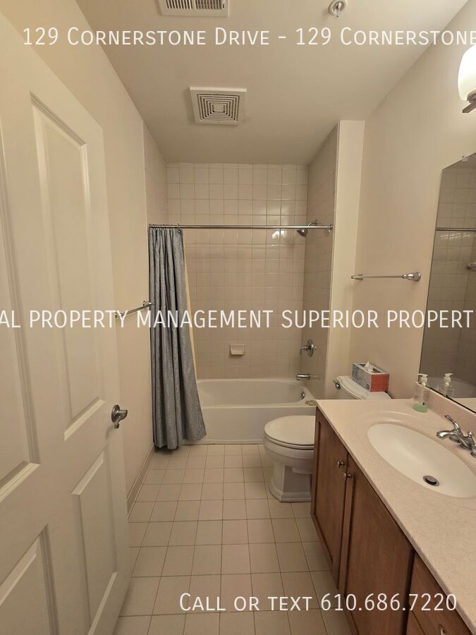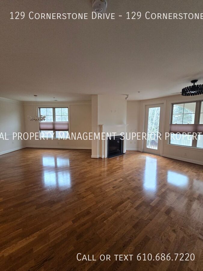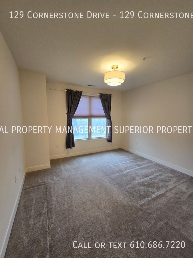 Welcome to 129 Cornerstone Drive, an extraordinary luxury condominium located in the highly sought-after Terrazza Properties at Newtown Square. This beautifully appointed residence comprises an ideal blend of elegance, comfort, and modern convenience, offering a refined living experience in one of Delaware County’s most coveted communities. A meticulously designed and curated living space, with over 2,000 square feet, this sophisticated luxury unit boasts three-bedrooms and two-and-a-half-baths, delivering both spaciousness and warmth, perfect for those seeking upscale living in an idyllic setting. Upon entering this special second floor property, you are welcomed by an inviting open floor plan bathed in natural sunlight streaming through oversized windows, enhancing the airy feel and freedom of this tranquil living space. The main living area flows effortlessly into a beautifully designed kitchen that features premium stainless-steel appliances, sleek black countertops, and ample fine wood cabinetry, creating a seamless environment for both everyday living and entertaining guests. The adjoining dining and living areas provide a comfortably elegant environment, highlighted by sophisticated and modern lighting fixtures and a relaxing gas fireplace, providing warmth and character during cooler seasons. Just beyond the living area, a private balcony, with a rare southwest facing and elevated view of forest lined highlands, offers a peaceful outdoor retreat where you can enjoy a morning coffee, or simply unwind with a choice beverage at the end of a busy day. The primary suite is designed as a private sanctuary, offering generous floor space, large walk-in closets, and a luxurious en-suite bathroom complete with dual vanities, a soaking tub, and a separate walk-in shower. A spacious second bedroom boasts a fully equipped bathroom, a linen closet, and a unique direct southern vista of a beautiful and stately water fountain encircled by a manicured walkthrough garden, providing impeccable accommodations for your guests or family members. The third bedroom features a private walk-in closet, representing an ideal space for a home office, guest room, or additional private retreat. A conveniently located half bath offers a proper powder room for guests, while an in-unit laundry and dryer package further complements your ease of daily living. Friendly Terrazza Residents enjoy exclusive access to an exciting collection of resort-style amenities that enhance the upscale lifestyle this community offers. The beautifully maintained clubhouse offers a luxury kitchen and full wet bar, pool table, large screen televisions, library study, and gaming room, serving as an onsite entertainment venue for casual social gatherings, as well as more formal events. In the warmer months, a full-size outdoor swimming pool and sun deck deliver the picture-perfect scene for relaxation with a cold drink, or reprieve from the summer heat. For those who enjoy a more active lifestyle, the clubhouse also features a fitness center well-appointed with modern workout equipment, private locker rooms, a steam room, and a enclosed yoga and Pilates area, while the Terraza grounds feature dedicated tennis and pickleball courts, an enclosed private dog park, scenic walking paths surrounded by meticulously landscaped grounds overlooking charming running brooks. An assigned underground private parking space, and a spacious bonus storage room, further increase the convenience and exclusivity of this attractive luxury residence, rarely available on the open rental market. This location is simply fantastic. Ideally located within minutes from Route 252, West Chester Pike, Route 1, Bryn Mawr Avenue, Route 320, and Interstate 476, this home offers easy access to the Main Line, King of Prussia, Media, and Philadelphia, placing world-class shopping, dining, and entertainment within close reach at any moment. At the same time, the peaceful environment of the Terrazza community affords a quiet and private retreat from the bustle of everyday life. This outstanding condominium rental presents a rare opportunity to experience upscale living in one of Newtown Square’s most desirable and exclusive communities. Combining elegant design, generous living space, premium location, and access to outstanding amenities, 129 Cornerstone Drive offers a lifestyle defined by comfort, convenience, and sophistication. Schedule your private showing today and experience the exceptional comfort and lifestyle offered at this remarkable residence.