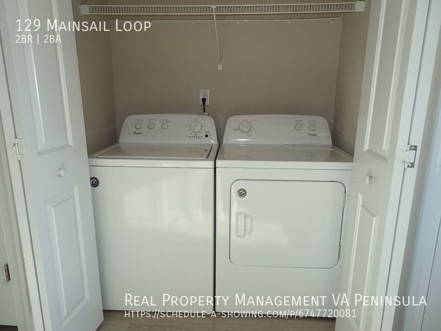 Welcome to this beautiful lake-front 2-bedroom, 2-bathroom one-floor condo located in the new neighborhood of Yorktown, VA. With driveway parking available, convenience is at your doorstep. The house boasts a modern and stylish design, featuring a full stainless steel appliances package and granite countertops in the kitchen. The open-concept layout creates a spacious and inviting atmosphere, ideal for entertaining guests or simply enjoying quality time with loved ones. The 2 bedrooms each come with their full bathrooms, ensuring privacy and convenience for all occupants. Additionally, the screened porch provides a delightful space to relax and enjoy the lake view. For added convenience, a laundry closet with a washer and dryer is included, making household chores a breeze. Yard maintenance is free. Don't miss the opportunity to make this condo your home. The community clubhouse. A Movie theater, shops, and restaurants are just a couple minutes away. 10 minutes away from Kiln Creek Golf Club. Pets with restrictions. Coventry Elementary, Grafton Middle/High. 2 Bedroom With 2 Full Bathrooms 360 Degree Virtual Tour Community Clubhouse Driveway Parking First Floor Primary Full Package Appliances Granite Countertops Laundry Room With Washer/Dryer Open Concept Screened Porch