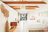 Set behind a lush, hedged entrance off the mall in the coveted Silver Strand, this exceptional Coastal residence embodies the pinnacle of beachside living. Located on a premier walk street just moments from the sand, the meticulously crafted 4-bedroom, 5-bathroom home blends refined modern design with timeless luxury.Natural light pours through dozens of oversized windows and skylights, illuminating rich oak flooring and custom built-ins that showcase impeccable craftsmanship throughout. The primary suite is a true sanctuary, featuring soaring 15-foot vaulted ceilings, dual walk-in closets, and a spa-inspired en-suite bath designed for relaxation.Ideal for entertaining, the versatile lower-level screening and game room includes a sleek kitchenette, creating the perfect space for hosting guests. Seamless indoor-outdoor flow invites coastal breezes into multiple private outdoor areas. A lushly landscaped rooftop terrace captures sweeping mountain views, while the sun-drenched yard provide a serene space for quiet retreat. Situated within the exclusive Silver Strand enclave, residents enjoy 24-hour neighborhood security along with easy access to local parks, scenic bike paths, the beach, and premier Westside dining and shopping.Available for long-term lease (12+ months). Experience a lifestyle defined by luxury, privacy, and coastal serenity. MLS# 26658503