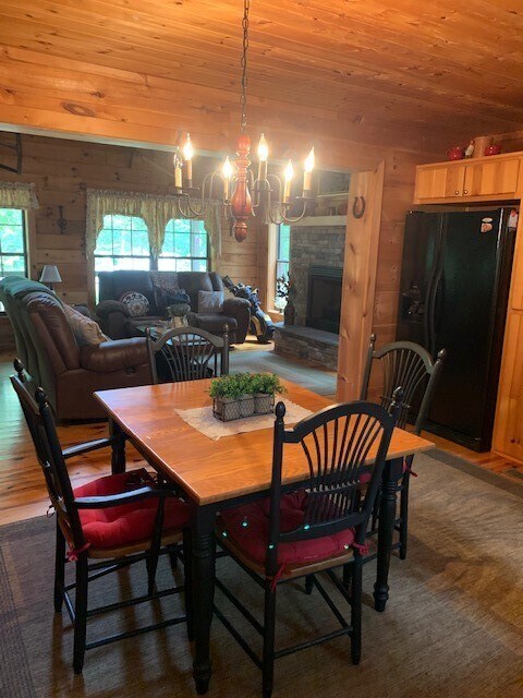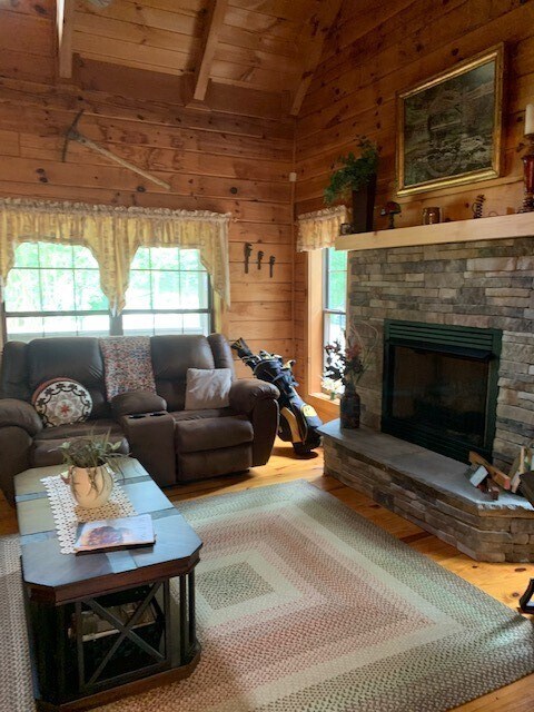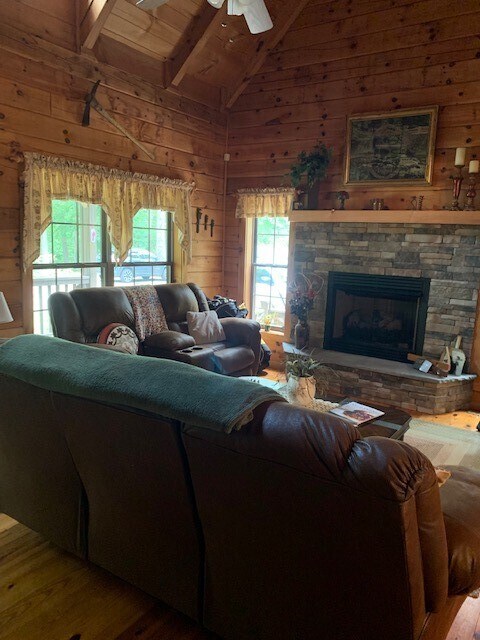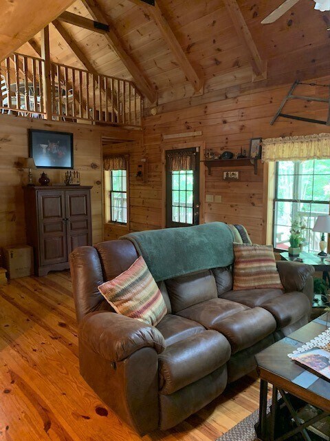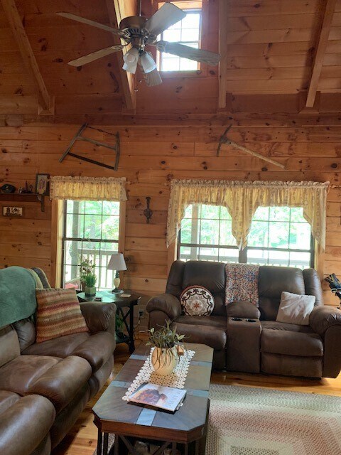 Exceptional log home with 2 bedrooms and 2 baths with loft bedroom or den. Large eat-in kitchen with all appliances. Spacious living room with stack stone fireplace. Large upstairs loft with pull out queen bed. Primary bedroom is on the main level and features a large closet and lovely bathroom with jetted tub and separate shower. Beautifully furnished and decorated. Will accommodate short- or long-term rental. Chickasaw point is a gated golf community with pool,tennis/pickleball courts,community center,library,2 boat ramps,beach and picnic pavilion,park,playground,short term courtesy boat slips and dry dock storage available with extra fee. This is a great community with classes to include workout classes,bingo nights and great holiday parties. Close to I-85.