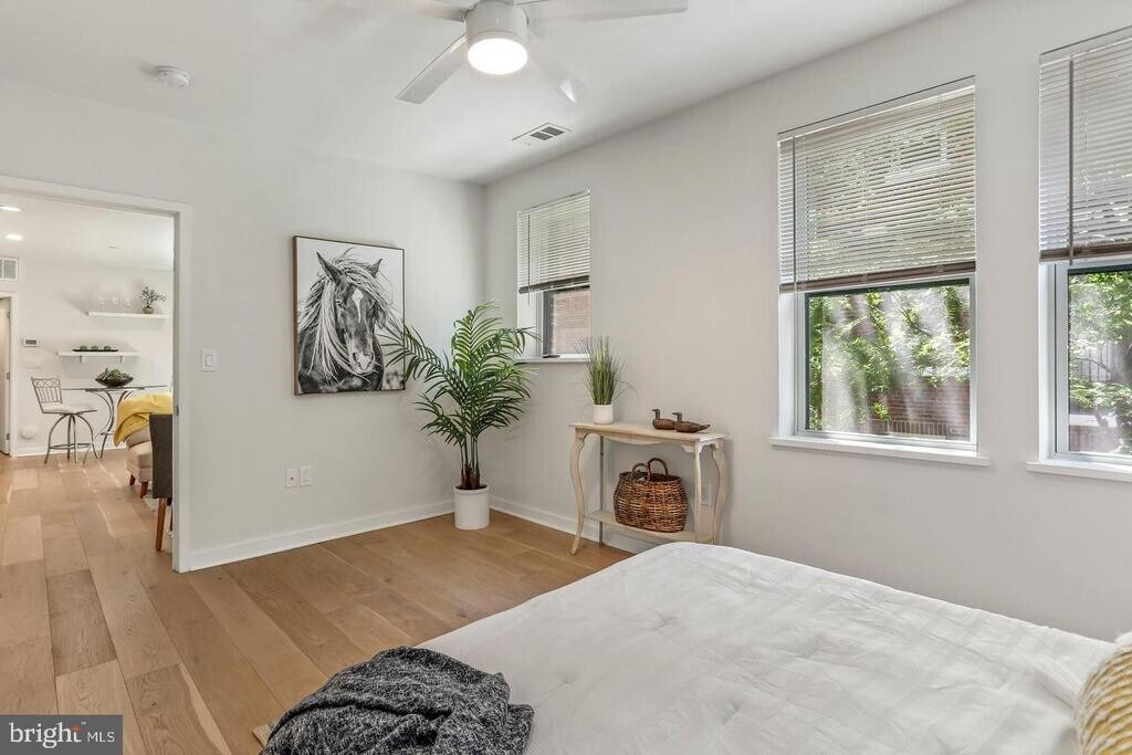 This stylish second-floor condo offers modern finishes and a smart layout in a prime NW DC location. Enjoy wide-plank oak floors, large windows, and a Juliet balcony overlooking a gated private courtyard. The high-end kitchen features quartz countertops, an Italian tile backsplash, a center island, and a Bosch appliance suite with a gas cooktop and vented hood. Bedrooms are positioned on opposite ends of the unit for added privacy—ideal for roommates or a home office setup. The primary suite includes a walk-in closet and an ensuite bath with a glass walk-in shower. The second bedroom connects to a full bath with a soaking tub and also overlooks the courtyard. Additional perks: In-unit washer/dryer and central A/C. Rent includes water and gas utilities. Steps from Shaw Metro, Whole Foods, Red Hen, Boundary Stone, and more. Property square footage are approximate and should be independently verified. Square footage on record should not be used for property valuation. *Photos are from the prior listing; no updates or changes have been made to the property since.