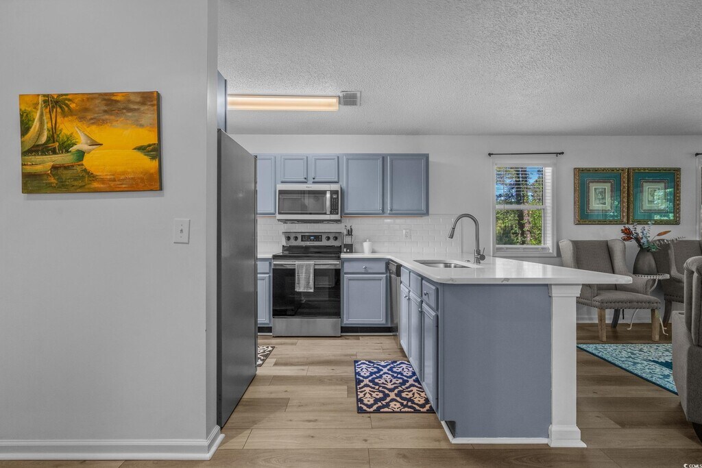 This spacious 2-bedroom,2-bathroom ground-floor condo offers comfort,style,and convenience. Perfect for beach living,you’ll love the open layout and relaxing coastal vibe. Enjoy your morning coffee or evening wine on the screened-in back porch,a peaceful spot to unwind. Located just walking distance to the community pool and only 7 miles from the ocean,you're close enough to feel the breeze but tucked away for a peaceful escape. Whether you're lounging at Surfside Beach,exploring Myrtle Beach’s top attractions,or dining at nearby restaurants,this condo puts you in the heart of it all—without the noise. Step inside this bright and modern 2-bedroom,2-bathroom ground-floor condo and feel instantly at home. The open-concept living and dining area offers plenty of space to relax,featuring comfortable seating,a smart TV,and tasteful coastal décor. Large windows let in natural light,creating a cheerful and welcoming atmosphere. The fully equipped kitchen includes everything you need to prepare meals during your stay—stainless steel appliances,cookware,dishes,a coffee maker,and a breakfast bar for casual dining. The primary bedroom features a queen-sized bed,an en-suite bathroom,and a large closet. The second bedroom includes a plush twin bed with pull out trundle and easy access to the second full bathroom. Enjoy your morning coffee or evening wine on the screened-in back porch,a peaceful retreat with views of the surrounding greenery—perfect for quiet moments or casual conversation. With central AC,in-unit washer and dryer,and free Wi-Fi,everything you need for a comfortable and convenient stay is right here. Shorter lease terms available.