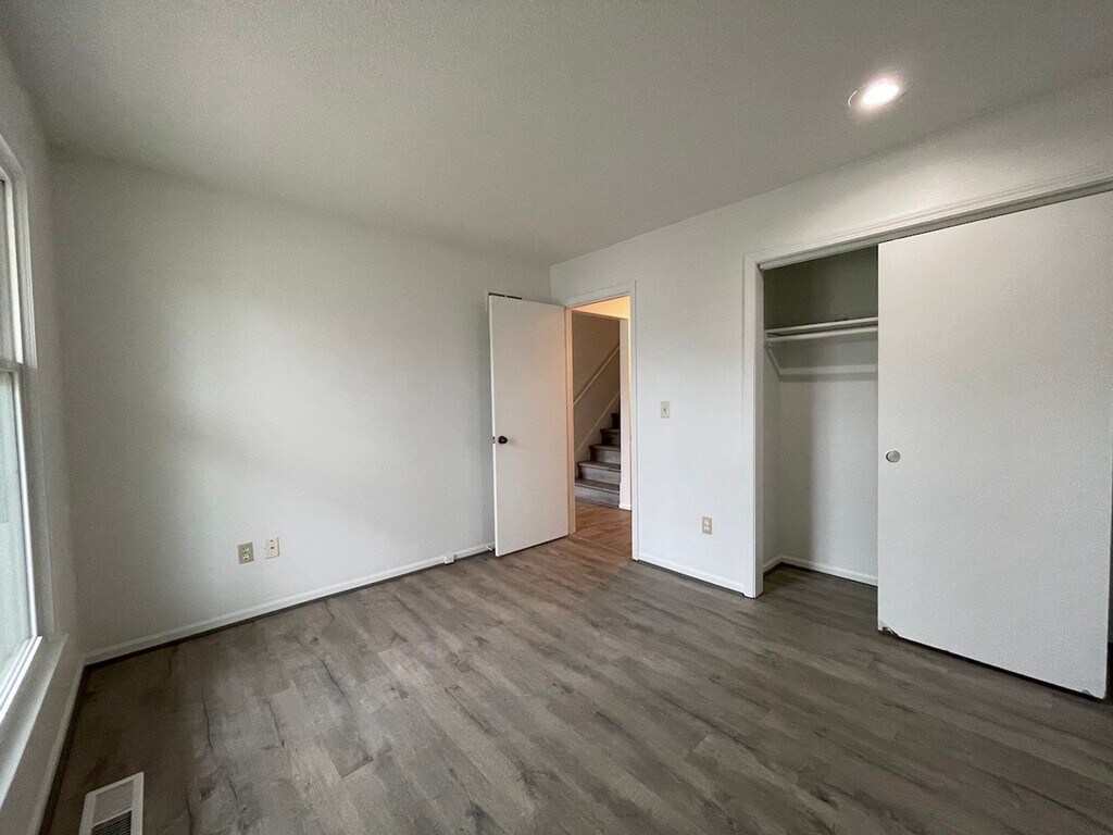 Updated spacious Shawnee home featuring fresh paint, new flooring throughout, brick fireplace, and 1 car attached garage. The main floor layout includes a large living area with dining space, main floor bedroom, half bath, laundry hookups located on the main, and quartz counter tops in the kitchen. Two bedrooms are located on the 2nd level and share a full hall bath. The large primary bedroom includes a ceiling fan, fresh pain, new flooring & walk-in closet that connects to the shared bath. The full-size unfinished basement provides plenty of space for all your storage needs. Shawnee Mission School Disctrict