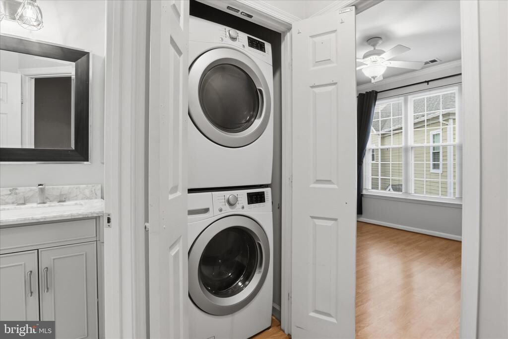 Renovated and rarely available Two Level Loft Style 2 BR / 2 BA 1,140 sq. ft Condo in Worldgate Condo Community that comes with one assigned parking space, one dedicated parking permit and is blocks from Silver Line Metro! Upon entry to unit, you are met by Kitchen / Dining / Living Room floorplan with neutral laminate flooring throughout entire main level. Kitchen includes granite counters, stainless appliances, white cabinets, tile backsplash and storage. Dining Room has custom bench with extra built-in storage. Living room includes accent wall and gas log fireplace that leads to private and large patio for exterior living space. Primary bedroom off living room with two large closets including walk-in and is near laundry area with large stackable washer / dryer combo and main level fully renovated full bathroom with gray cabinets, granite counters, dual sinks, expansive mirror and tub / shower combination with tile. Upstairs is enclosed loft area that can be used as second bedroom, with second full bathroom that includes stand-in shower. Along with the one assigned parking space and dedicated permit for second space is plenty of visitor parking for guests. Community includes outdoor pool, fitness center and on-site management located in the community center. Close to the Toll Road / 267 and Route 28, Dulles Airport and the Silver Line Metro for commuting. Worldgate shopping center is nearby with restaurants, coffee, retail and movies. Pets to be considered on a case by case basis, with weight restrictions in the condo development. A great location and beautiful condo, do not miss out! Disclaimer, some photos in listing are virtually staged in listing. Dogs are permitted on a case by case basis, no cats allowed. Property is available 1/17/2026.