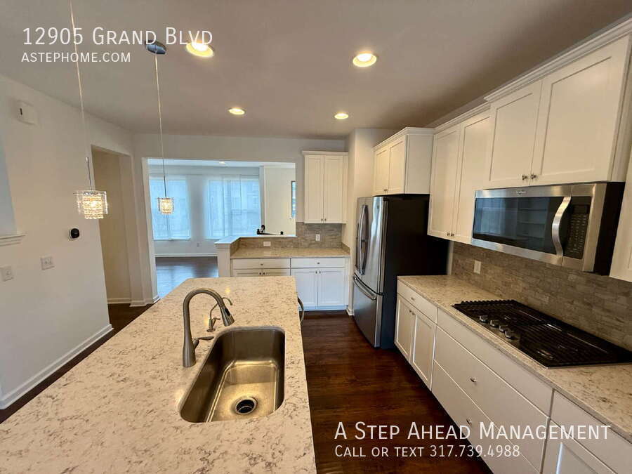 Welcome home to this beautifully maintained 2-bedroom, 3.5-bath tri-level townhome located in the highly desirable Grand & Main neighborhood in Carmel. This spacious home offers a versatile layout with multiple living areas, including a bright main living room and a cozy hearth room with a gas fireplace. The lower-level family room with a full bathroom provides the perfect space for guests, a home office, or a media room. The stunning kitchen features quartz countertops, a large center island, a built-in pantry, and stainless steel appliances, with a dining area and private balcony just off the kitchen—ideal for relaxing or entertaining. Upstairs, you’ll find a loft area for additional living space, along with both bedrooms. The primary suite includes a double vanity sink and a spacious walk-in closet. Washer and dryer hook-ups are conveniently located on the upper level. Additional highlights include a half bath on the main level, window coverings, stylish light fixtures, neutral finishes throughout, and a two-car attached garage. This home offers the perfect blend of comfort, style, and convenience in one of Carmel’s most sought-after communities. Minimum security deposit = $2,299 12 Month lease term Dishwasher, Stove Top, Fridge, Double Ovens, and Microwave Included. Utilities-resident is responsible for all utilities of gas, electricity, water, sewer, stormwater, and trash. Lawn and snow removal included. Pet Fee - $300 non-refundable pet fee per pet. Max two pets. Monthly pet fee of $30 per pet. Aggressive breed dogs allowed by must have required insurance. Call or email for details $60 application fee for anyone over the age of 18. Applications are completed online. Applications and Application criteria are at A Step Ahead Management Residents are enrolled in the Resident Benefits Package (RBP) for $45/month which includes renters insurance, credit building to help boost your credit score with timely rent payments, $1M Identity Protection, HVAC air filter delivery (for applicable properties), a best-in-class resident rewards program, and much more! More details upon application approval. Water softener-all maintenance is at the resident expense if you choose to utilize this home feature. Call the school directly to verify the district. Section 8 not accepted.Stove Township School