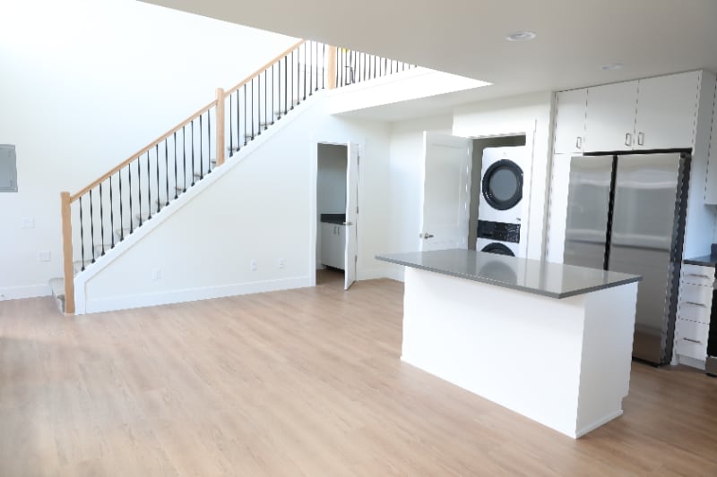 Property Id: 2347055 Be the first to live in this thoughtfully designed three-bedroom, two-and-a-half-bath home offering a flexible layout, bright living spaces, and standout Mount Hood views in a quiet residential setting within walking distance of Happy Valley Park. With a main-level primary suite and multiple bonus living areas, the home works well for a variety of living arrangements and lifestyles. The main floor features an open living and dining area with great natural light and a spacious kitchen with generous cabinet and counter space. The primary suite is located downstairs for convenience and privacy, and includes a walk-in closet and a full private bathroom with a custom tile shower. A half bath for guests and first-floor laundry add to the practical, easy-living floor plan. The downstairs patio is set up for outdoor seating and everyday use. Upstairs, you’ll find two additional bedrooms along with a versatile loft area that can function as an office, media space, or reading nook. The loft opens directly onto a private balcony with a stunning view of Mount Hood — a rare feature that adds both charm and livability to the home. Parking includes one space per household, with the possibility of an additional garage parking space available to rent.