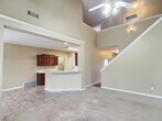 Well-maintained home with a main-level primary suite, thoughtfully separated from an additional bedroom and full bath. The spacious family room features soaring ceilings, a cozy fireplace, and an open flow into the kitchen. Upstairs, you’ll find two bedrooms with a shared full bath, plus a versatile loft area (dimensions under play/bonus room) ideal for a bonus space, office, or play area. Includes a two-car garage, and the refrigerator, washer, and dryer are all included. Neighborhood amenities include a lake and play area. *Please note - Carpet in dining room is being replaced.* MLS# 10211651