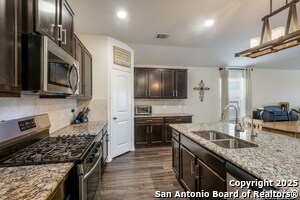 Beautiful 4/2/2 single story home in Whisper Falls. Heart of the home is the beautiful kitchen w/granite countertops, rich wood cabinetry, stainless appliances, breakfast bar, gas cooking. Vinyl plank flooring through the living/dining/kitchen, and carpet in the bedrooms. Primary suite is split from the other bedrooms & has a walk-in closet. Master bath equipped with double vanity, separate garden tub & shower. Pets considered on a case-by-case basis. Neighborhood community amenities, including pool, playground, sports court, jogging trails. Fresh paint December 2025. Welcome Home.