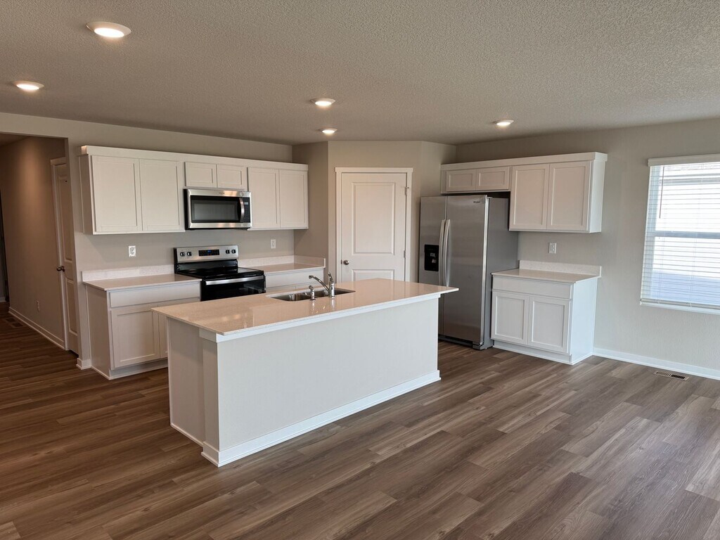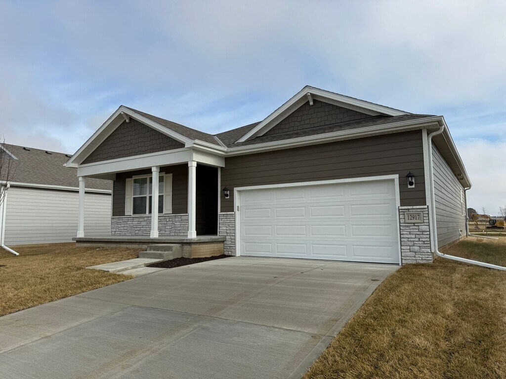 Move-in ready and never lived in, this spacious ranch-style home offers 4 bedrooms, 3 bathrooms, and over 2,500 square feet of total living space, including a fully finished basement. The open main living area provides an ideal layout for everyday living and entertaining, with a kitchen featuring an oversized island, corner pantry, quartz countertops, and views of the dining and great room areas. Luxury vinyl plank flooring runs throughout the main level. The primary suite includes a large walk-in closet and an ensuite bath with dual vanities. The finished lower level adds a large living space, fourth bedroom, full bathroom, and abundant storage. Conveniently located near Offutt AFB, this brand new home offers modern finishes and a functional layout ideal for comfortable living. Available now for $2,900 per month. Small dogs allowed with a pet fee of $50 per month. Rental application is $45 per adult and security deposit is $2,900.