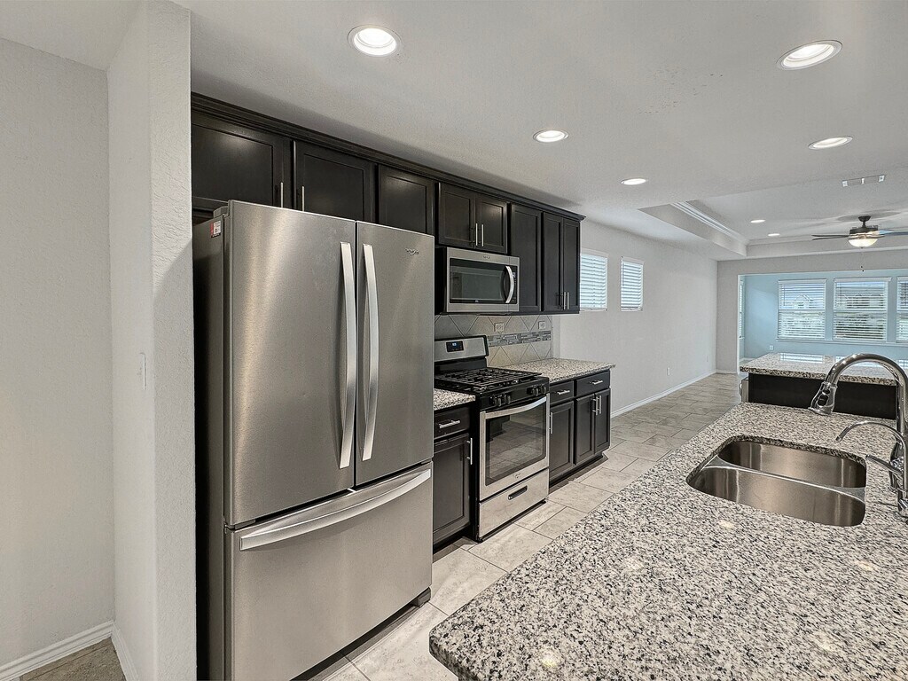 ****FOR AGES 55 AND OLDER COMMUNITY ONLY**** Move in Ready! Deposit-Free Living w/ Obligo!! Enjoy a resort-like lifestyle within this active community tailored for those aged 55 and above. Simply charming single-story, 2 bed / 2 bath home... feel right at home from the moment you walk in- tiled in all main and wet areas. New Carpet/Pad in Bedrooms. Granite breakfast bar kitchen with all s/s appliances included. Master suite with spacious walk-in shower, dual vanity... Covered patio provides ample space to relax and/or entertain. Furniture as viewed can remain, if desired, for added convenience. Neighborhood amenities include miles and miles of improved walking trails, Golf Cart Friendly Gated Community, 28,000+ Square Foot Community Center that includes multiple pools, indoor sports court, work out facility, billiards and game rooms, a library, pickleball,and so much more. Fridge/Washer/Dryer/Water Softener Included. Gutters and Full Sprinkler System. -- All T2M Real Estate residents are enrolled in the Resident Benefits Package (RBP) $55.95/month offering a smarter, easier renting experience with built-in protection/insurance and perks. -- Schedule a self showing here: