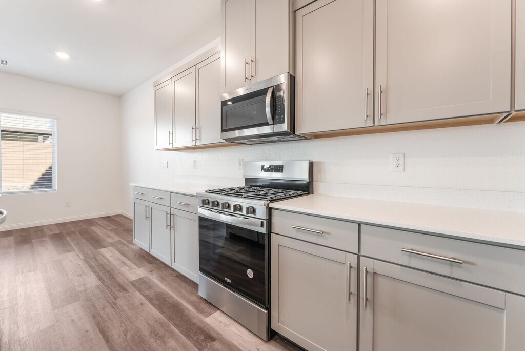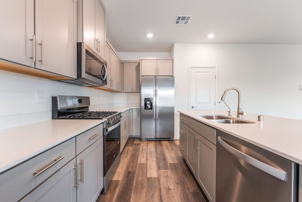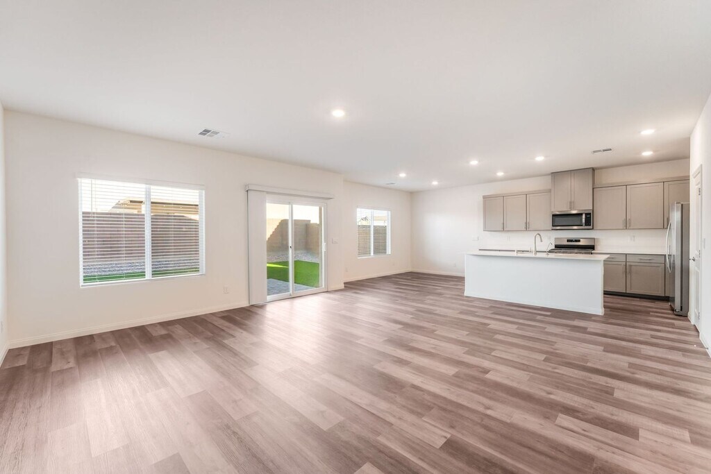 Welcome home to this beautifully designed two-story residence offering 5 bedrooms, 3 bathrooms, and a 2-car garage perfect for comfort, space, and modern living. The open-concept kitchen is a standout, featuring a large island, quartz countertops, stainless steel appliances, soft-close cabinets and drawers, and an undermount sink ideal for entertaining or everyday living. Stylish LVP flooring flows throughout the main living areas, while smart home technology adds convenience and efficiency. This home comes move-in ready with refrigerator, washer and dryer, and window blinds included just bring your personal touch and settle in. With thoughtful upgrades throughout and plenty of space to live, work, and relax, this home truly has it all!