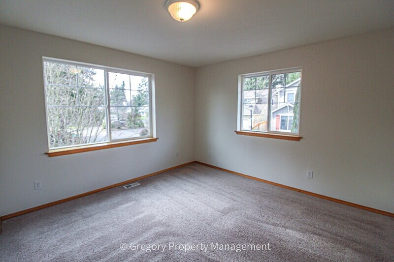 Newer bright and spacious 5 bedroom home in quiet neighborhood with community Playground. Excellent Woodinville location is just a minute to the freeway and in the Top Rated Northshore School District. * Bright and open floor plan offers new paint and updated fixtures throughout. * Lots of windows brings in plenty of natural light throughout, saving you on energy bills. * Spacious eat in kitchen features newer SS appliances, plenty of cabinet space, and an island with seating space that overlooks the living room. * Living room has gas fireplace. * Main floor den or guest bedroom. * Formal dining or sitting room. * Upstairs has 4 bedrooms, one large enough for an entertainment or game room. * Laundry room upstairs on bedroom level includes newer W/D and utility sink. * Extra large primary bedroom with oversized walk in closet and full bath ensuite that features a large soaking tub and stand alone glass door shower. * Attached two car garage. * Backyard is fully fenced with a patio large enough for BBQ and furniture. * Neighborhood playground available exclusively for residents. * In the Top Rated Northshore School District and is walking distance to elementary and HS. * Great location with easy Highway access and short drive to dining and shopping. **Small dogs considered with owner approval** Presented by Gregory Property Management Call with questions 8 am to 4 pm Monday through Friday We do not accept Zillow applications. Please visit our website **To Schedule a viewing ** Call our 24 hour SELF SHOWING HOTLINE 425. 217.3598. OR visit our web site Gregory Property Management dot com and click ""schedule a showing""