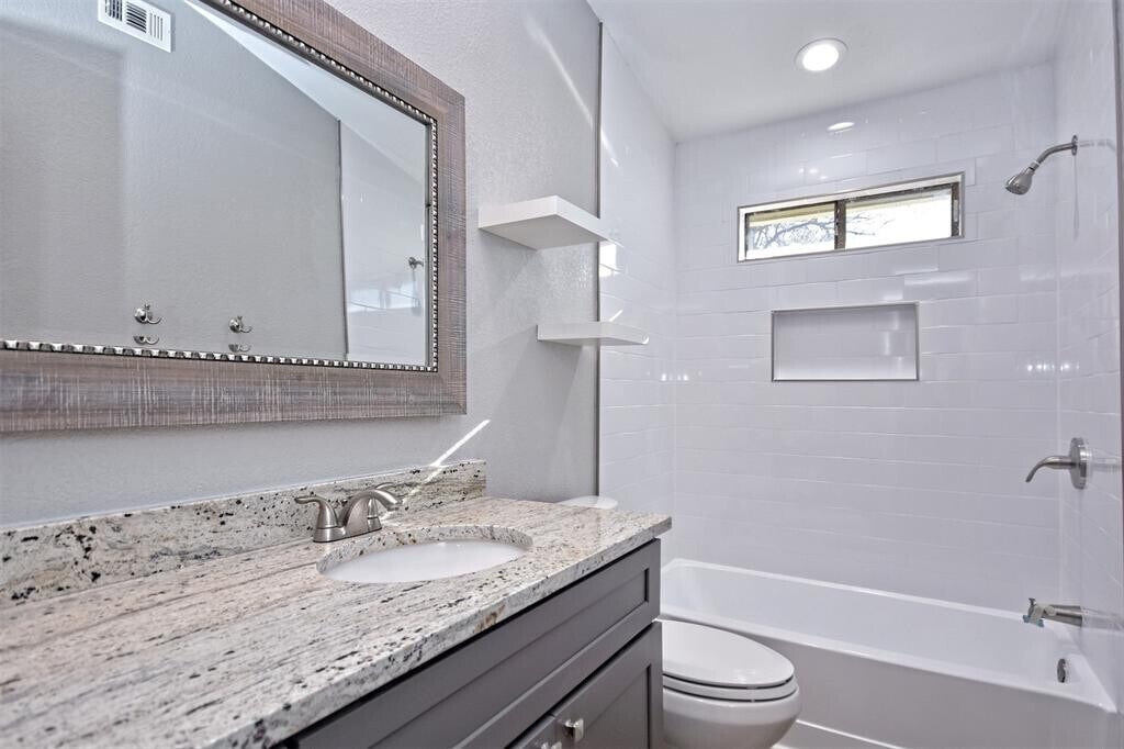 Contemporary Remodel: 4-Bedroom, 1-Story Home in NW Austin's Popular Rattan Creek! Featuring vinyl plank flooring throughout—no carpet. The remodeled kitchen boasts a stainless-steel gas range, microwave, dishwasher and side-by-side fridge, granite counters, a subway tile backsplash, and updated cabinets. The bathrooms have updated vanities, granite countertops, and contemporary tiled showers/baths. Well-maintained property with recently painted interior in August 2024, energy efficient HVAC, roof shingles and exterior paint in past 3 years and no popcorn ceilings! The fantastic location is just 1 block from hike-&-bike trail and gorgeous neighborhood park with Jr. Olympic sized pool, playground and sport courts/fields! Located in the award-winning Round Rock ISD with Pond Springs Elementary school a short walk away. Less than 1 mile from the new Apple campus and within 2 miles of two HEB groceries, Starbucks, Hwy 183 and Parmer Ln and dozens of restaurants and shops. Only 10 minutes from Austin’s 2nd downtown, the Domain!
