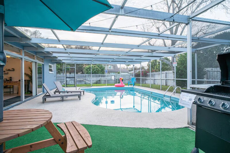 Property Id: 2239842 Fully furnished 3BR/2BA tropical retreat (1,500 sq ft) in a quiet Largo neighborhood, just 5 minutes from Indian Rocks & Belleair Beach. Enjoy a private solar-heated pool inside a screened lanai with lounge chairs, BBQ grill, and outdoor dining. Inside features a bright open layout with living room, fully stocked kitchen, and birch-wood dining area. Entertainment includes a billiard table, foosball, cornhole, board games, three Smart TVs, and 420 Mbps Wi-Fi. Bedrooms include queen/full beds with new 12" mattresses, quality linens, and ample storage. Home also offers washer/dryer, central A/C, garage parking, beach gear, Pack-N-Play, and high chair. Highlights: boat/RV parking, weekly pool service, family-friendly setup. Lease Terms: We are open to up to 9 month lease Security deposit: 1 month's rent Pet deposit: 25% of monthly rent Utilities paid by renter No smoking, parties, or drugs Tenant screening required ($55) Contact directly via email Close to parks, golf, beaches, dining, and shopping.