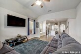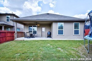 Well-maintained single-story rental home located in the highly desirable Alamo Ranch community. This 3-bedroom, 2-bath home features an open floor plan designed for comfortable everyday living and easy entertaining. The spacious kitchen is equipped with granite countertops, a large center island, stainless-steel appliances, and a convenient butler's pantry, along with two separate eating areas for added flexibility. Interior highlights include durable tile flooring in main areas, ceiling fans throughout, and a functional layout that maximizes space and natural flow. The primary suite and secondary bedrooms offer comfortable accommodations for a variety of living needs. Enjoy outdoor living in the nicely sized backyard complete with a privacy fence and covered porch-ideal for relaxing or entertaining. Ideally located with easy access to H-E-B, restaurants, shopping, entertainment, Lackland AFB, the Medical Center, and San Antonio International Airport. Residents enjoy access to excellent community amenities including a swimming pool, park, playground, sports court, BBQ grills, and walking trails. Virtual 3D tour available.