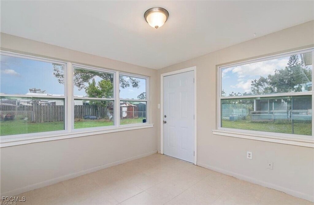 Welcome home to this charming 3-bedroom,1-bath residence with a bonus sunroom/den—perfect for a home office,playroom,or extra living space. This home features tile flooring throughout,a beautifully updated kitchen with granite countertops and wood cabinetry,and a functional split-bedroom layout that makes the space feel open and comfortable. Enjoy peace of mind with new roof and windows installed in 2023,plus a spacious fenced backyard with room to relax,entertain,or garden. Located in Fort Myers Shores,you’ll love the easy access to Palm Beach Blvd,SR-31,and I-75,plus you’re just minutes from boating amenities including a public boat launch and marina,perfect for anyone who wants to enjoy the SWFL lifestyle. Move-in ready and available now,schedule your private showing today!