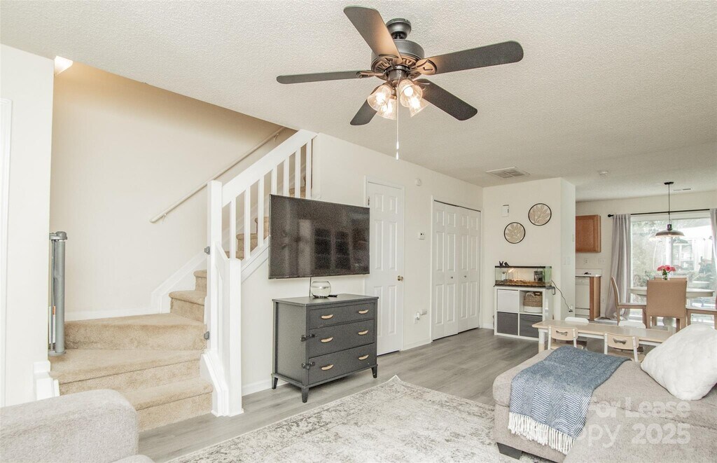 Discover this inviting two-bedroom townhome nestled in one of Charlotte’s hottest and most convenient areas! The open floorplan features neutral paint and NEW Luxury Vinyl Flooring,creating a bright and welcoming atmosphere. The spacious Living room & Dinning Area flow seamlessly into the kitchen,which offers ample cabinet space,matching appliances,and a built-in microwave. Upstairs,both bedrooms feature vaulted ceilings and share a large Jack-and-Jill bath with an extended vanity and a linen closet for extra storage. Step outside to a private patio surrounded by lush trees—perfect for relaxing or entertaining. An outdoor storage unit adds convenience. Washer/Dryer Connections in unit. Ideally located near I-485,I-77,Charlotte-Douglas Airport,Charlotte Premium Outlets and Carowinds. Just a short drive to the Light Rail,Uptown,and Lake Wylie!
