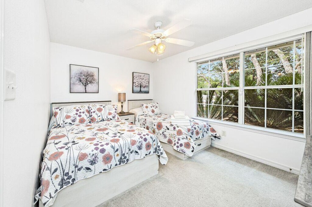 Charming 3-bedroom, 2-bathroom house nestled in a quiet neighborhood of Pensacola. Surrounded by trees and a wooded area, this single-family home feels like your home away from home and comes with all needed essentials and amenities for a comfortable stay, whether for a weekend or a long-planned vacation. This classic house boasts unique architectural details and a beautiful patio. Fully furnished with charming interiors, this house features a spacious living room with a smart TV and a fully furnished kitchen with appliances, ideal for a home-cooked meal. The house offers 3 spacious bedrooms, including 1 queen-size bed in the master bedroom, a queen-size bed in the second bedroom, and a full-size and twin bed in the third bedroom. Enjoy your own private deck patio after a day of discovering this beautiful city. The property includes a big driveway for parking with free parking space available at the property. Parking is in the driveway only, with space for 4 vehicles, and no parking is allowed on the street. If you are up for discovering everything Pensacola has to offer, hop in the car and venture out to explore all the must-see places and attractions this amazing beach getaway paradise has to offer. There is so much to do and see here, including beaches, dining, and many entertainment options. The home has a maximum occupancy limit, and renters who exceed this limit are subject to eviction. No smoking is allowed in the unit or on the balcony, and any violation of the smoking policy will incur a $250 fine plus cleaning costs to remove smoke odors. Quiet hours are observed from 10 pm to 8 am, and violators will be charged a $200 fine. The Homeowners Association has a strict no-pets policy, which applies to emotional support animals, as they are not covered by ADA. Only ADA-compliant service dogs are allowed according to Federal Law. No parties or events are allowed, and violators will be charged a $500 fine. A state identification card or driver's license copy will be requested upon booking. A security camera is installed outside for safety and protection, but there are no surveillance cameras inside the property. [SI]