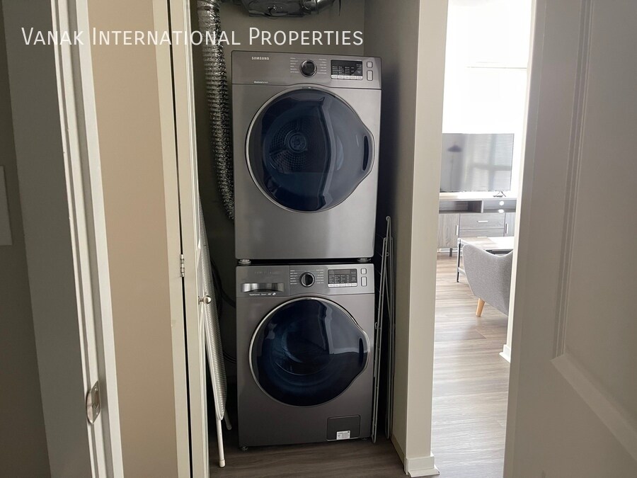 This fully furnished one-bedroom, one-bathroom residence is ideally situated in the heart of downtown Vancouver, offering both comfort and convenience. The suite features portable air conditioning, hand-set porcelain tile flooring in the entryway, kitchen, and bathroom, flat-profile wood baseboards and casings, horizontal Venetian blinds, and laminate cabinetry in both the kitchen and bathroom. The kitchen is finished with laminate countertops, Euro-style faucets, and white Frigidaire appliances. The bathroom showcases an oval porcelain china basin in classic white and a deep soaker tub, creating a clean and modern aesthetic. Residents of The Oscar enjoy floor-to-ceiling, double-glazed, thermally isolated, energy-efficient windows, a full-time resident manager, and a computer-controlled key fob security system for enhanced security. Building amenities include a party room, fully equipped fitness centre, and a rooftop garden with city views. Exceptionally located, the building is just steps from public transit, with the YaletownRoundhouse SkyTrain Station less than a five-minute walk away, providing effortless access to the rest of the city. Balcony/Deck Bike Locker Billiards Room City View Media Room Meeting Room Party Room Pet Friendly Security/Alarm Views Washer/Dryer In Unit