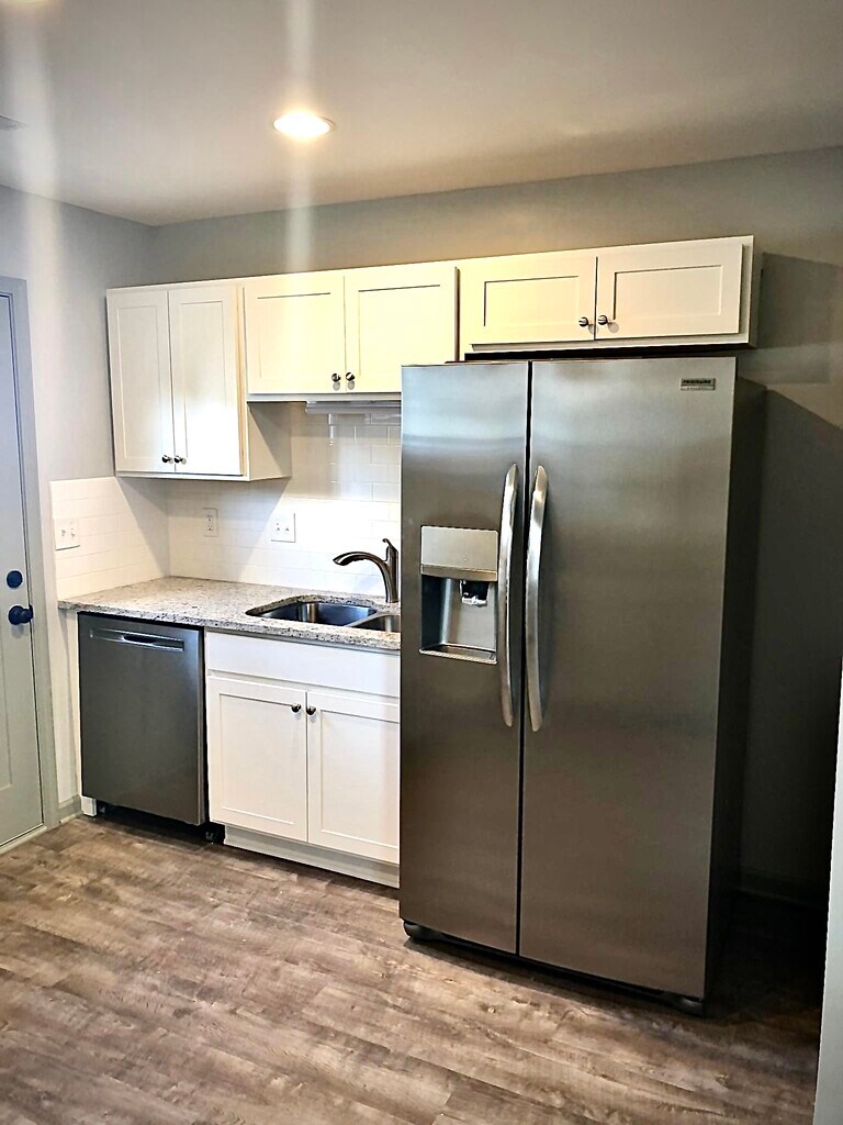 Luxurious and upgraded two bedroom home in Southern Orchards. Boasting an array of sleek finishes and a thoughtful open plan layout, this immaculate 2 bedroom 1.5 bath home is great for an urban dweller. Amenities include: new luxury vinyl plank floors throughout, stainless steel appliances (dishwasher, washer and dryer in unit, AC) granite countertops, fenced in backyard and two car garage. Please reach out to schedule a tour!