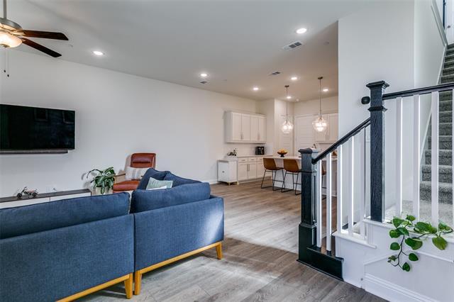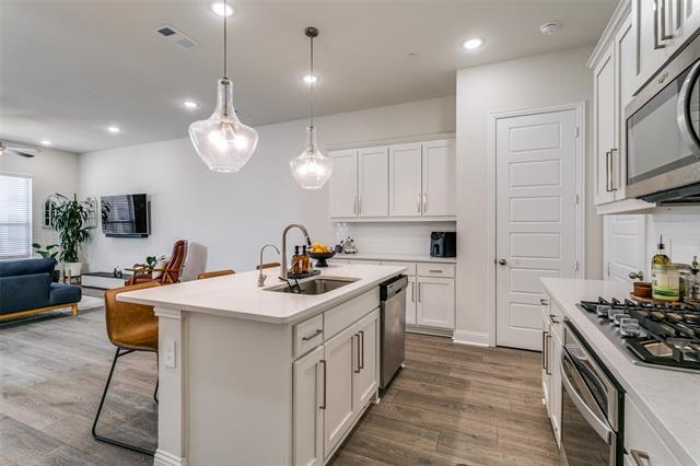 Modern Townhome Near Las Colinas! Nestled in the desirable Kensington Place community, this stylish, energy-efficient townhome offers the perfect balance of modern design and everyday convenience. A long private driveway leads to a spacious two-car garage, setting the stage for the thoughtfully upgraded interior. The bright, open layout features a living area, three bedrooms, and two-and-a-half baths—ideal for both relaxing and entertaining. The chef’s kitchen shines with an oversized island, gas cooktop, built-in microwave, and stainless steel appliances. An added 220-volt outlet makes this home electric-vehicle ready. The generous primary suite is a true retreat, complete with an expansive walk-in closet designed for effortless organization. Enjoy resort-style community amenities such as pools, a fitness center, parks, and jogging trails, all just steps from your door. With premier dining, shopping, and entertainment minutes away in Las Colinas, this home delivers low-maintenance living with exceptional comfort and convenience.