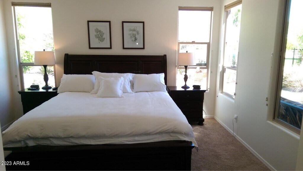 PERFECT LOCATION--BACKS TO A PARK/GREENBELT. THIS PROPERTY IN AN ACTIVE ADULT COMMUNITY. In walking distance to the Kiva Club. Come rent this fully furnished Flora model with THREE bedrooms,extended patio and a courtyard in the front of the house. Has an open floor plan with great room,dining area and kitchen. Kitchen has engineered stone countertops,SS appliances,island,breakfast bar,pantry,sliding door to front courtyard. Primary bath has dual sinks,shower,walk-in closet. Extended patio with fire pit is a perfect oasis for enjoying your time at Trilogy. UTILITIES INCLUDED WITH A $300 A MONTH CAP!